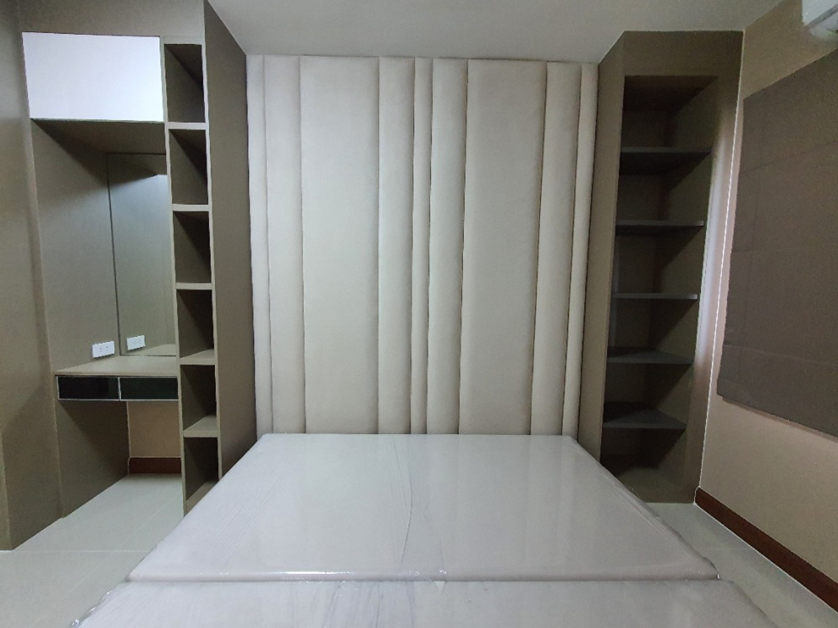 Room for sale, renovated + newly decorated, 100% complete, ready to move in S.V. City Condo Rama 3 2 bedrooms, 1 bathroom, 75 sq m. 14th floor, river view + suspension bridge (The most beautiful view unit of the project) Renovation items - Removing the white granito tile floor with marble pattern - Removing the bathroom and kitchen tiles, smooth plaster ceiling - Removing the balcony floor tiles Paint the walls, railings - Built-in kitchen, add Ireland granite top - Built-in kitchen counter cabinets High gloss front door - Change the electrical wiring, new electrical cabinet and circuit board - Change the main air conditioning wiring to a new larger size - Sanitary ware, American Standard mixer faucet - I-SPA bathtub - Change the bedroom and bathroom doors - Change the windows with mosquito screens in 2 bedrooms - Install wallpaper in 2 bedrooms and living room - Wiring Fiber Optic High Speed Internet - Smoke Alarm Link to the lobby - UV protection curtains for 2 bedrooms - Light blocking blinds for the living room balcony door - Change all switches and electrical outlets - All lights and downlights are LED Decorated by SB Interior Design - Bedroom furniture set - Rose gold bed headboard glass wall - Built-in wardrobe - Work desk + storage cabinet - 3 + 1 leather sofa set Seat + center table - TV cabinet + hanging cabinet and shelves - High gloss front refrigerator cover - Dining table set with 6-seat tempered glass top List of electrical appliances - 1 Samsung 24000 BTU air conditioner 2 9000 BTU - Samsung UHD 4K Curved TV 55 inches - Samsung Inverter refrigerator 14 cubic feet - Electric stove + Hafale hood - Electrolux front loading washing machine 7.5 kilos - Digital Door Lock (fingerprint scan) Project highlights - Common fee only 23 baht/sq m. - 1 private parking space - Staff and security guards at the lobby 24 hours - Just renovated the lobby and replaced the elevator - 2-story brick partition wall, soundproof - 25 meter salt water swimming pool, futsal court, basketball court - Food court, Korean, Japanese, Chinese restaurants, spa, haircut, laundry, 7-eleven Convenient transportation, 15 minutes to Sathorn, Silom, Sukhumvit 3.95 Million baht Khun A Contact number