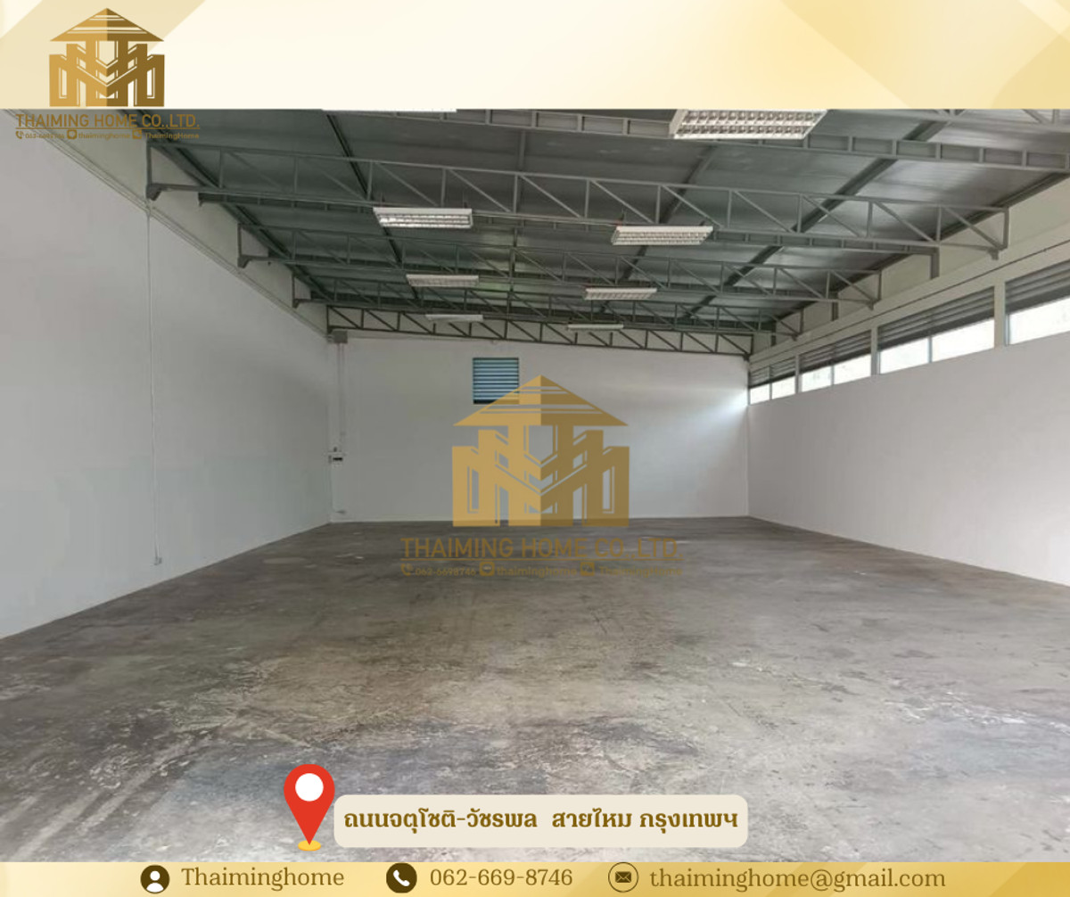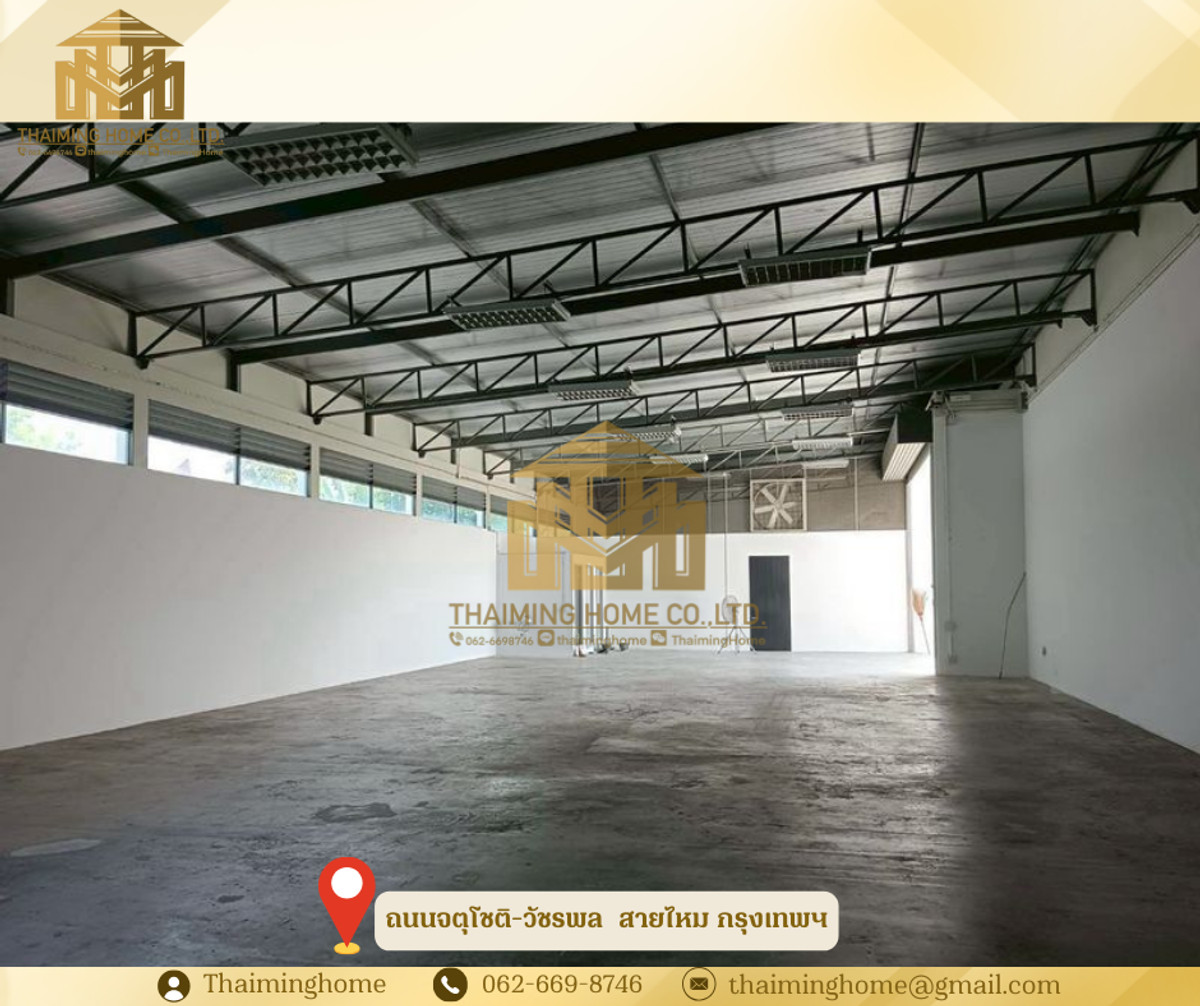 Warehouse with Office for Rent, 370 sq m, Bangkok, Chatuchak-Watcharapol (TW8-07826) Details - Warehouse size: 12 x 31 meters - Ceiling height: 6 meters, not stuffy - Metal Sandwich Panel roof with 2-inch thick insulation - Brick and plaster walls - Usable area: 370 sq m - 6-meter wide electric shutter door - Floor load capacity: 500 kg per sq m - 6-meter wide road - Includes office - 2 toilets, 1 shower Nearby Locations - Close to Chatuchak Expressway entrance/exit - Chalong Ratch Expressway - Sai Mai Avenue - Maruay Market, Hathairat 54 - Pink Line BTS Terms - Rental fee: Storage + office: 150 THB/sq m/month - For uses other than storage: 200 THB/sq m/month - Deposit: 3 months, Advance payment: 1 month - Contract: 3 years ________________________ บริษัท ไทยหมิง โฮม จำกัด Thaiming Home Co.,Ltd. 泰明房园 房产公司 _________________________ Contact ติดต่อ : Contact number Contact : Contact number คุณหมิง Line ID: thaiminghome Line ID: @thaiminghome https://lin.ee/PkkHwYv Wechat : ThaimingHome E-mail : Contact email _________________________
