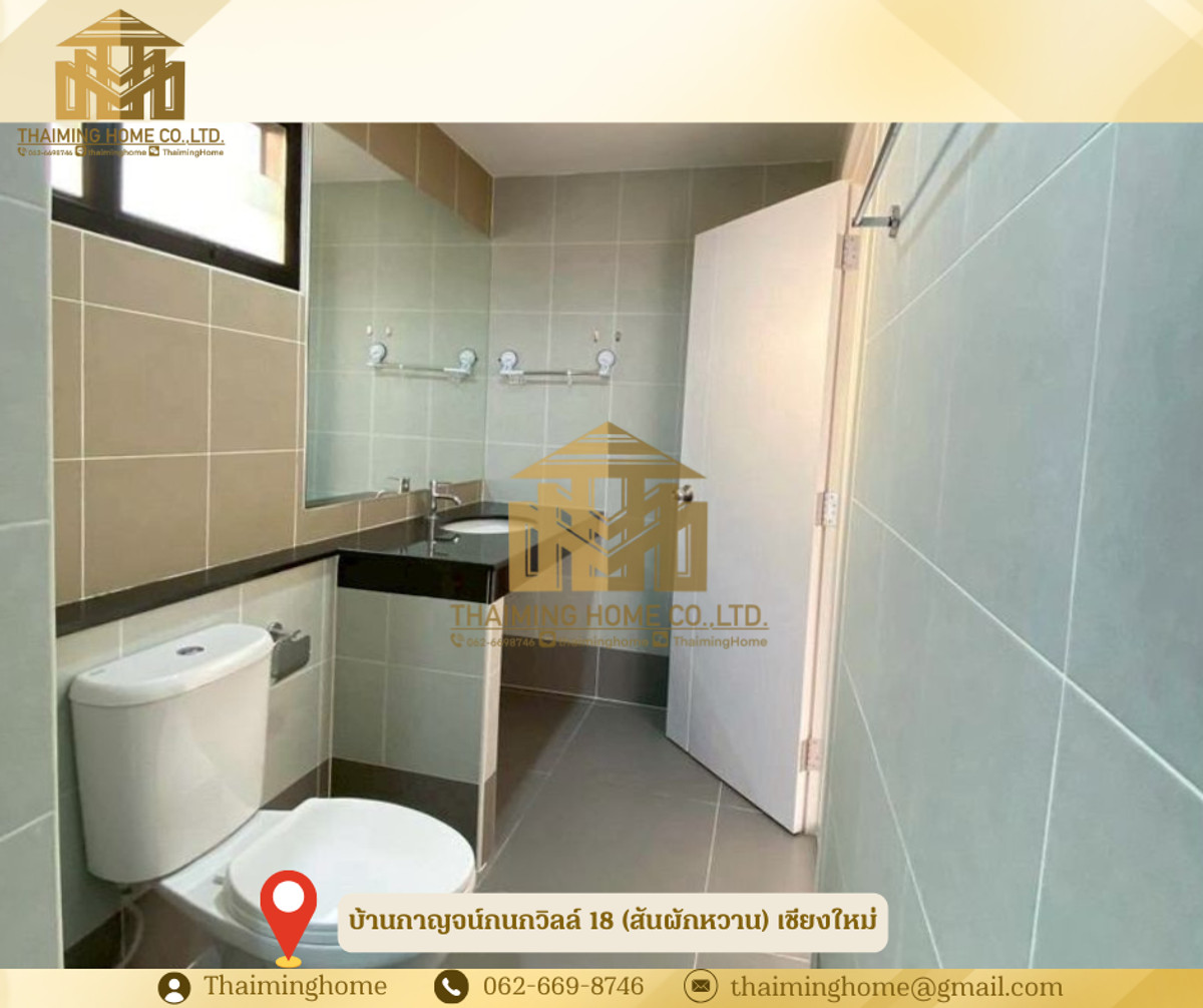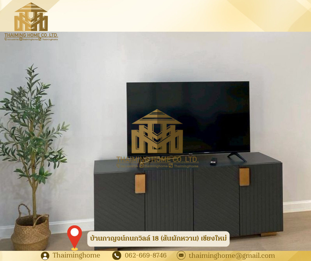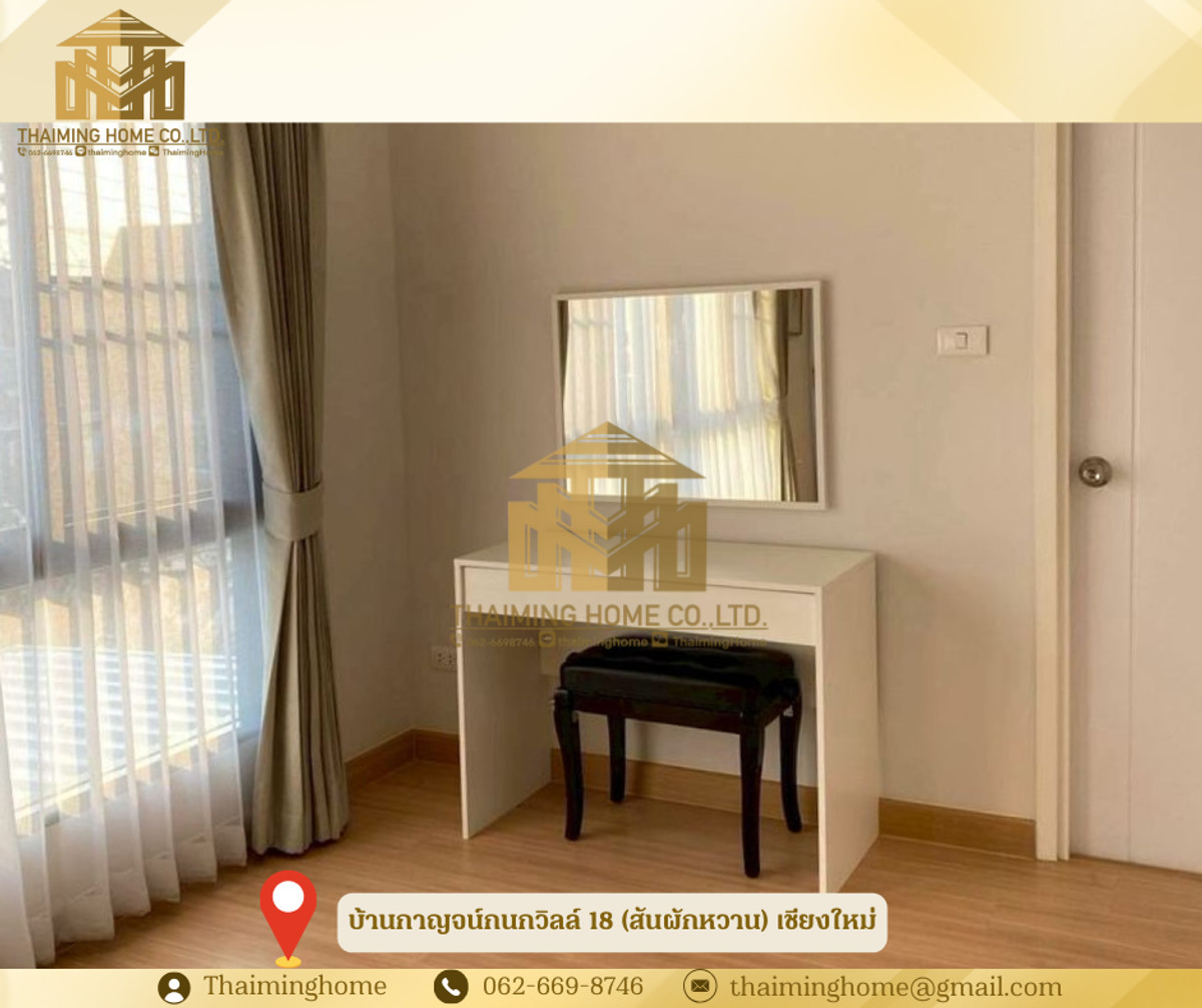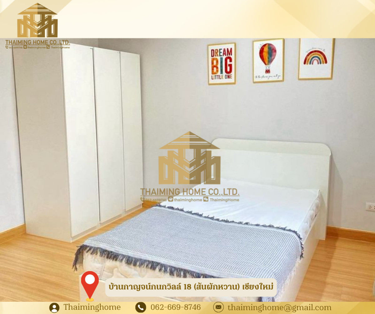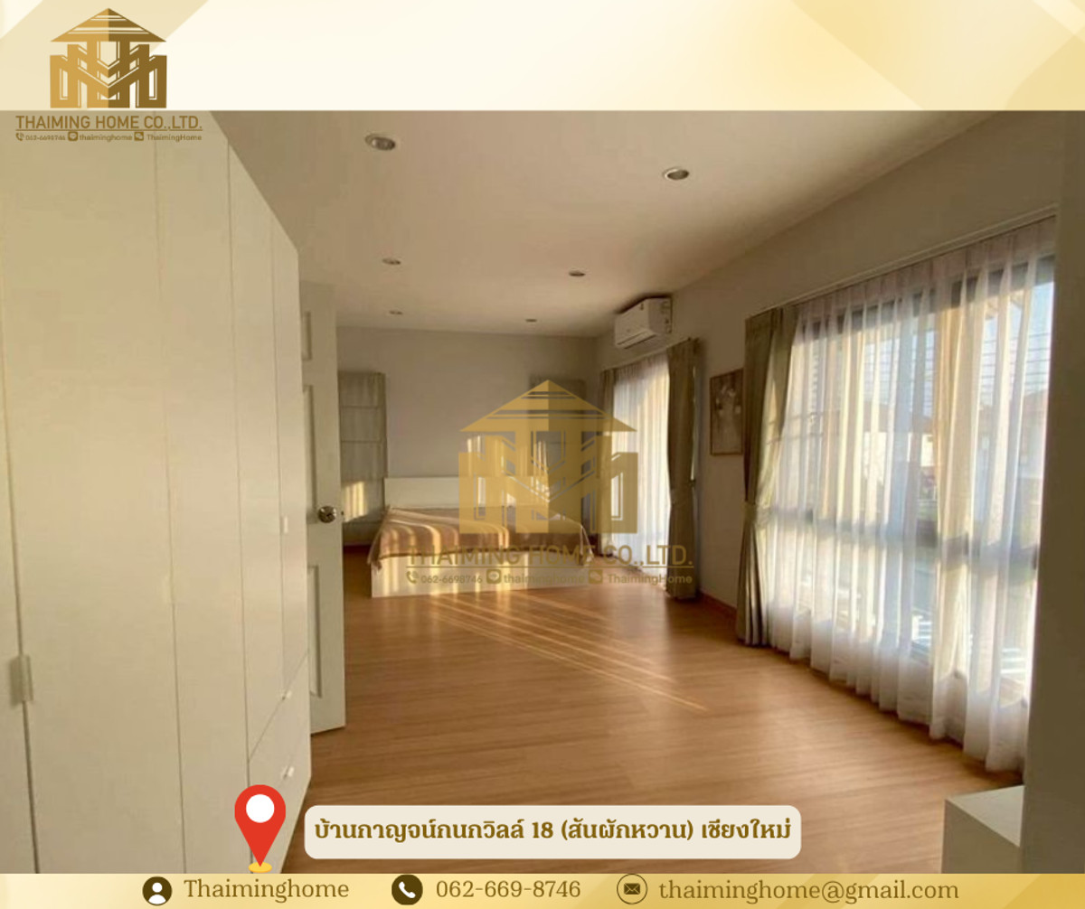 House for Rent!! Flood-free, 4 Bedrooms, 3 Bathrooms, Near Lanna International School, German Christian School, Kanjanakanok Ville 18 (San Phak Wan) (TH8-03526) Details - 4 Bedrooms, 3 Bathrooms - 200 sq.m. usable area - 96 sq.wah land area - Very large lawn - Extended carport - Side terrace for morning coffee - Fully furnished house - 5 Air conditioners (4 bedrooms + 1 living room) - 3 Water heaters - Digital door lock - Built-in kitchen with island - Washing machine - TV - Refrigerator - No more than 2 dogs allowed, no cats Terms - Price: 38,000 THB/month, 1-year contract - Special Offer!! Pay 6 months in advance, reduced to 36,000 THB - 2 months deposit, 1 month advance payment **Note: Decorations, vases, pillows, and bedding are not included.** ________________________ บริษัท ไทยหมิง โฮม จำกัด Thaiming Home Co.,Ltd. 泰明房园 房产公司 _________________________ Contact ติดต่อ : Contact number Contact : Contact number คุณหมิง Line ID: thaiminghome Line ID: @thaiminghome https://lin.ee/PkkHwYv Wechat : ThaimingHome E-mail : Contact email _________________________