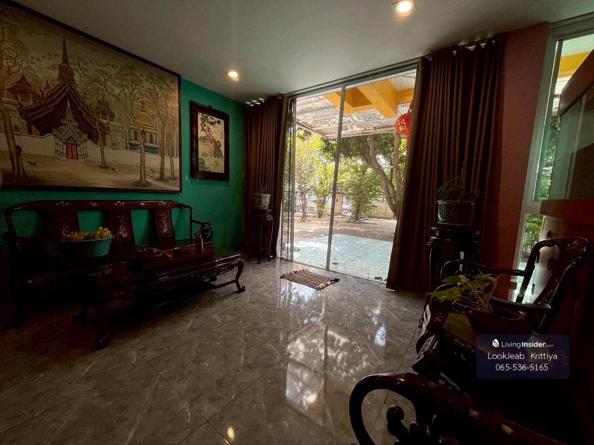 🏡 Single house, Soi Nawamin 95, near Pho Kaeo intersection, 3 bedrooms, 3 bathrooms, land 224 sq m., shady atmosphere, vintage style. Large area, hard to find, selling for 16.9 million baht. If interested, make an appointment to view the house in advance.