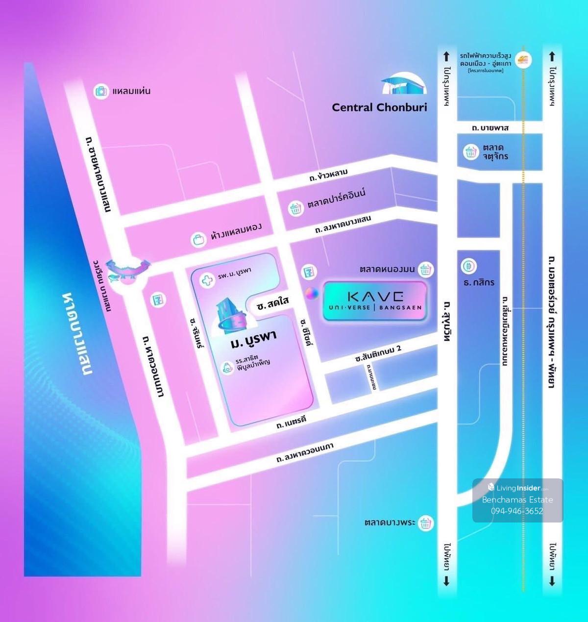 🔥Condo for Sale – KAVE UNI VERSE BANGSAEN – Ready to Move In, Near Burapha University 💰Price 1.76 Million Baht ⸻ ✨ Highlights • Only 200 meters from Burapha University (Sodsai Alley Gate) • Move-in ready, just bring your suitcase • Fully equipped with electrical appliances • Great value, monthly installment cheaper than long-term rent • Includes several free extras ⸻ 🛏 Room Details 1 Bedroom 1 Bathroom 3rd Floor Size 23.41 sq.m. Furniture / Appliances • 5 ft bed • Built-in wardrobe • Sofa • Built-in furniture • Electric stove • 1 Air conditioner • Bluetooth Sound System • Digital Door Lock • Sheer and blackout curtains Free Extras • Refrigerator • Microwave • Water heater • IKEA mattress • IKEA study desk • IKEA bookshelf ⸻ 🌳 Facilities • Air conditioner • Bluetooth Sound System • Digital Door Lock ⸻ 🚗 Nearby Places • Burapha University – 200 m (Faculty of Pharmaceutical Sciences) • 7-Eleven across the condo and beside the condo • Many restaurants and dessert shops • Pharmacy • Motorcycle taxi stand • Laundry shop • Wonnapha Beach • Bangsaen Beach • Bangsaen Fish Market • Nongmon Market ⸻ ( Property Code : BES 319 ) 📞 Contact for more information / Schedule a viewing For inquiries or to schedule a viewing 📱 Call 📞 Contact number (Khun Kuang) 📞 Contact number (Khun Ning) 📞 Contact number (Khun Pat) 📞 Contact number (Office) 💬 Online Contact 📍 WhatsApp : Contact number 📍 WeChat : kuanghuiagent 💚 Line ID : @benchamas_estate (include @) 👉 Add Line : https://lin.ee/65lt6tU 🏢 Benchamas Estate Professional Real Estate Agent | Buy – Sell – Rent Bangkok Properties