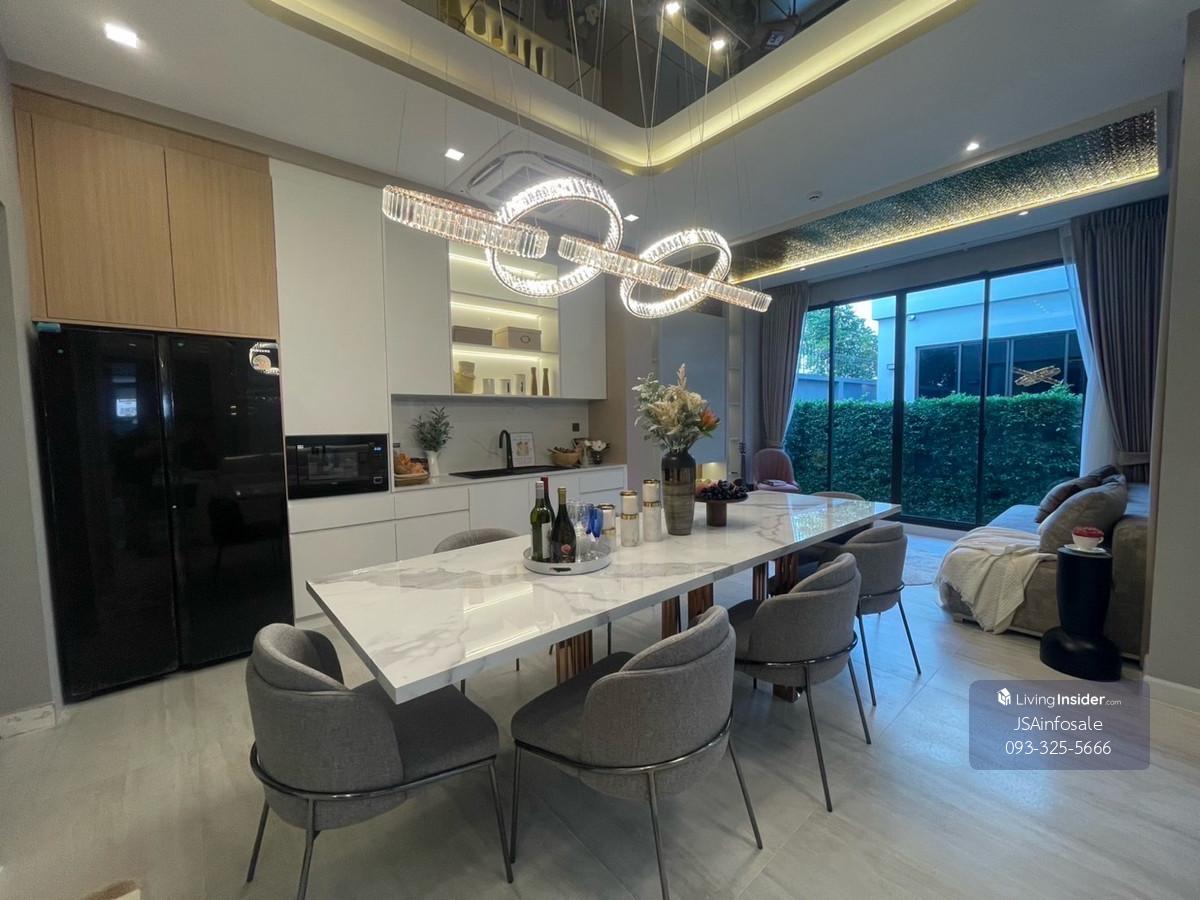 For sale or rent, 3-story luxury house, The Gentry Cultivar Rama 9, Krungthep Kreetha area, next to the expressway, near the MRT Orange Line, close to the airport, only 5 minutes. Area size: 1 ngan 0.02 sq m. / usable area 440 sq m. Details : - 3-story luxury house - 4 bedrooms - 5 bathrooms - Thai kitchen, Western kitchen - 1 maid's room - 3 parking spaces - There is an elevator in the house, fully decorated. - Washing machine, dryer, dishwasher Nearby places : - Thonglor - Ekkamai only 20 minutes. - Expressway only 5 minutes - Market Place Krungthep Kreetha 10 minutes. - The Walk Krungthep Kreetha 10 minutes - Samitivej Srinakarin Hospital 15 minutes - Kasemrad Hospital Ramkhamhaeng: 15 minutes - Ascot International School 10 minutes - Healtfield International School 10 minutes - RIS International School 10 minutes Selling price: 48,000,000 baht Rental price: 250,000 baht Property code: SH-005828 (Namtarn 040) 📞 Call: Contact number 📱 Line: @jsarealestate 💬 WhatsApp: Contact number 🌐 www.jsa.co.th ✨ JSA Real Estate – Buy, sell, rent complete real estate ✨ #Condo for rent #real estate #JSARealEstate