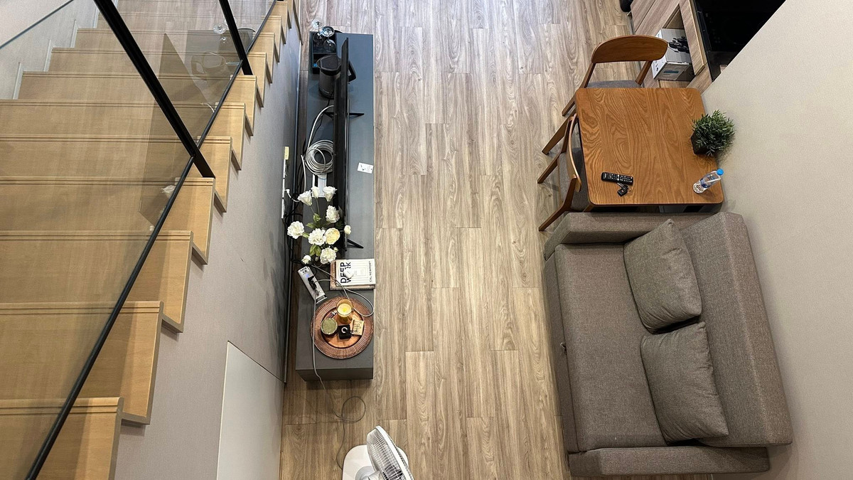 For rent: Blossom Condo @ Sathorn-Charoenrat (Blossom Condo @ Sathorn-Charoenrat), Building A, 1st floor, area 46 sq m., room type 1 BD Duplex (1 bedroom, 1 bathroom), furniture, electrical appliances, complete, ready to move in, rent 17,000 baht/month.