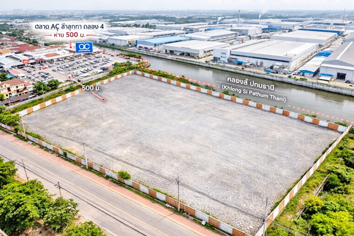 on 4 lane main road near AC Market LamLukKa Khlong4 only 450m with wide frontage 75m land size 7rai