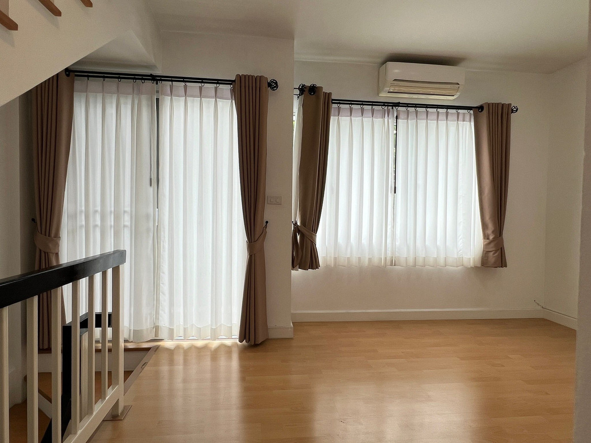 3-story townhome for rent, Town Plus On Nut-Lat Krabang. Air conditioning, complete furniture There are 3 bedrooms, 3 bathrooms. Monthly rental price 25,000 baht/month
