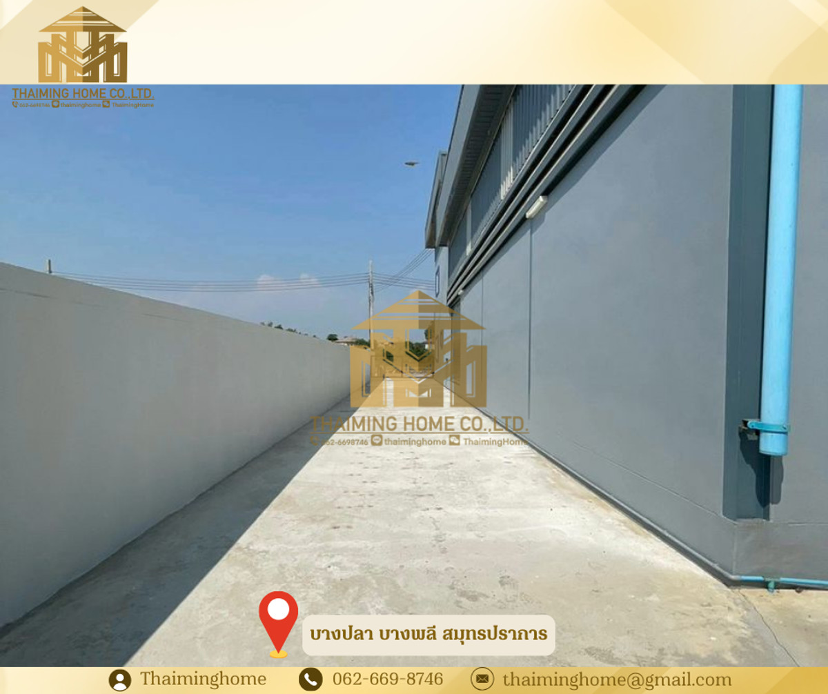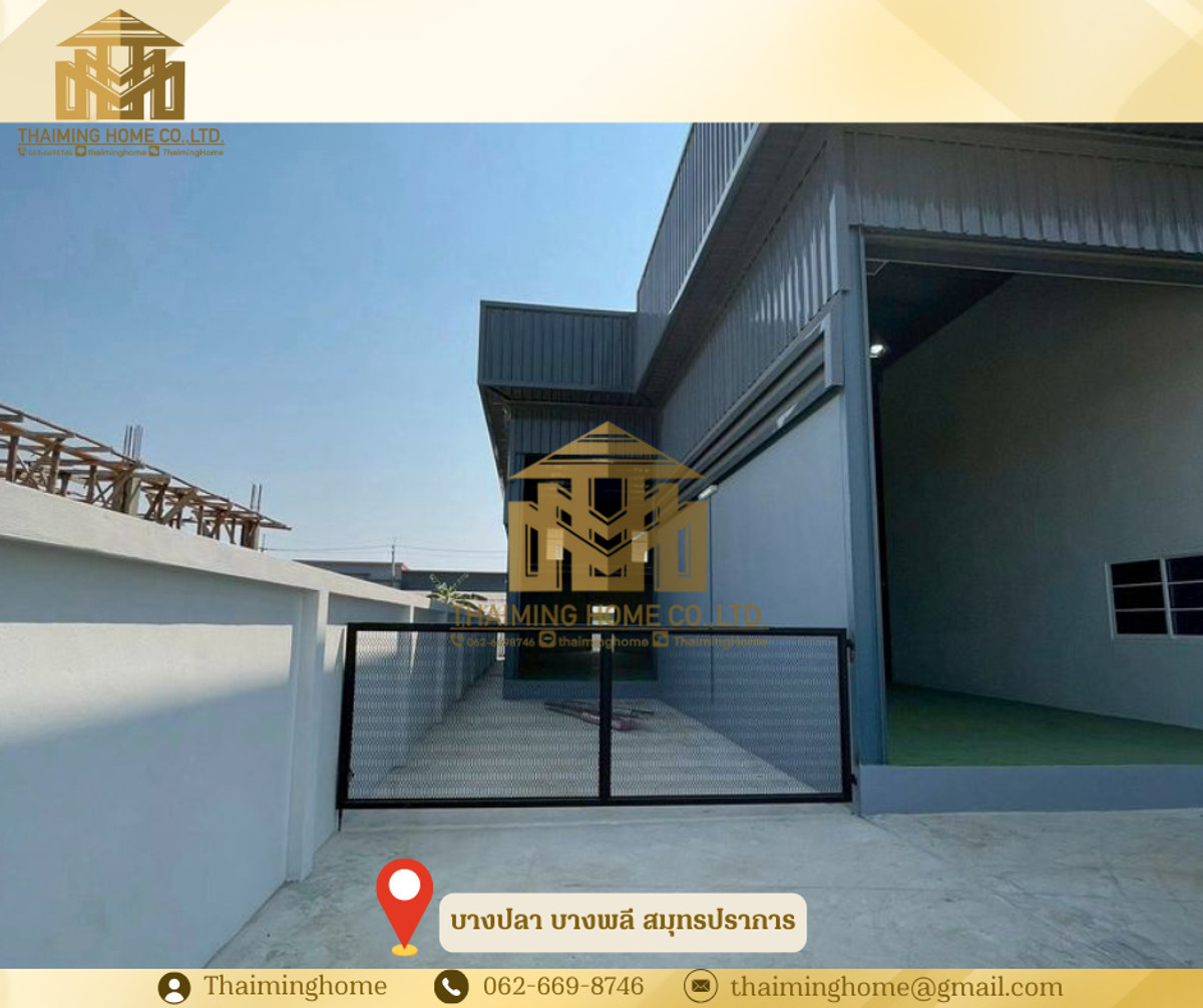 Factory with office for rent, Soi Bang Pla 2, Bang Phli, Samut Prakan (TW8-08726) Details - Land area: 172 sq wah - Total usable area: 760 sq m - Warehouse area: 312 sq m - Office area: 144 sq m (2-story office) - Four buildings available for sale/rent Rental conditions: - Rent: 80,000 baht/month - 3-year contract - 3-month security deposit and 1-month advance rent - Fire insurance paid at actual cost - Land tax: 50,000 baht per year - Selling price: 14.5 million baht Nearby locations: - Soi Bang Pla 2 - Theparak Road - Chularat 3 International Hospital ________________________ บริษัท ไทยหมิง โฮม จำกัด Thaiming Home Co.,Ltd. 泰明房园 房产公司 _________________________ Contact ติดต่อ : Contact number Contact : Contact number คุณหมิง Line ID: thaiminghome Line ID: @thaiminghome https://lin.ee/PkkHwYv Wechat : ThaimingHome E-mail : Contact email _________________________