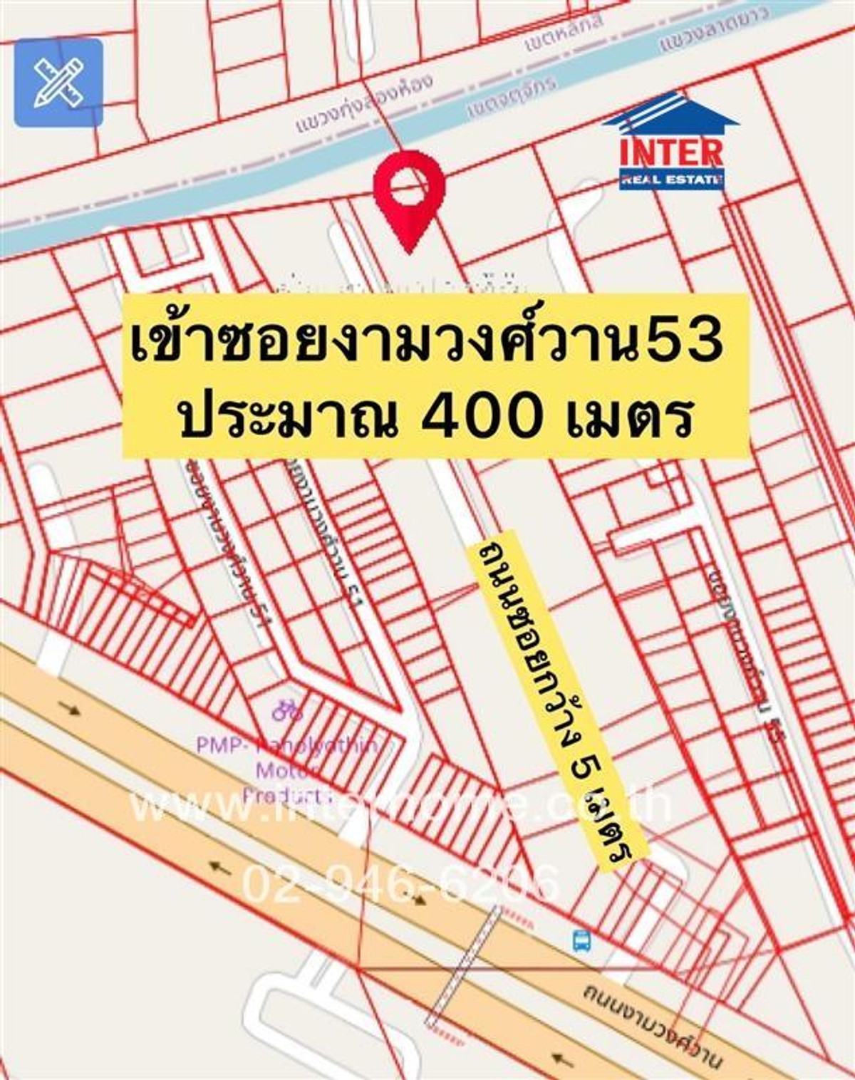 Mr. Narangsan Burakorn (Jay) Contact number: Contact number Office: Contact number Inquire via Line. https://lin.ee/xTo07Pn Line ID: @interhome Property code: 66682 Size 200 sq m Location: Land Soi Ngamwongwan 53, Ngamwongwan Road, Chatuchak District, Bangkok Details near Kasetsart University Near The Mall Ngamwongwan Empty land for sale. Soi Ngamwongwan 53 Ngamwongwan Road, Prachachuen Road, Vibhavadi Road, Bang Khen Subdistrict (South Side), Chatuchak District (Bang Sue), Bangkok Empty land, beautiful plot width 40 meters, depth 20 meters (approximately) orange area enter Soi Ngamwongwan, only 400 meters, behind the land next to Khlong Lat Yao Good location, nearby places: near Kasetsart University Near The Mall Ngamwongwan Convenient transportation: Ngamwongwan Road, Prachachuen Road, Vibhavadi Road, near the Brown Line (in the future) Interhome Realty Estate Company Limited Interhome Realty Estatewww.interhome.co.th Tel. Contact number https://www.interhome.co.th/propertydetail.php?propcode=66682