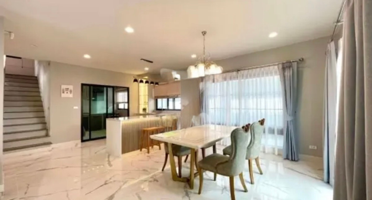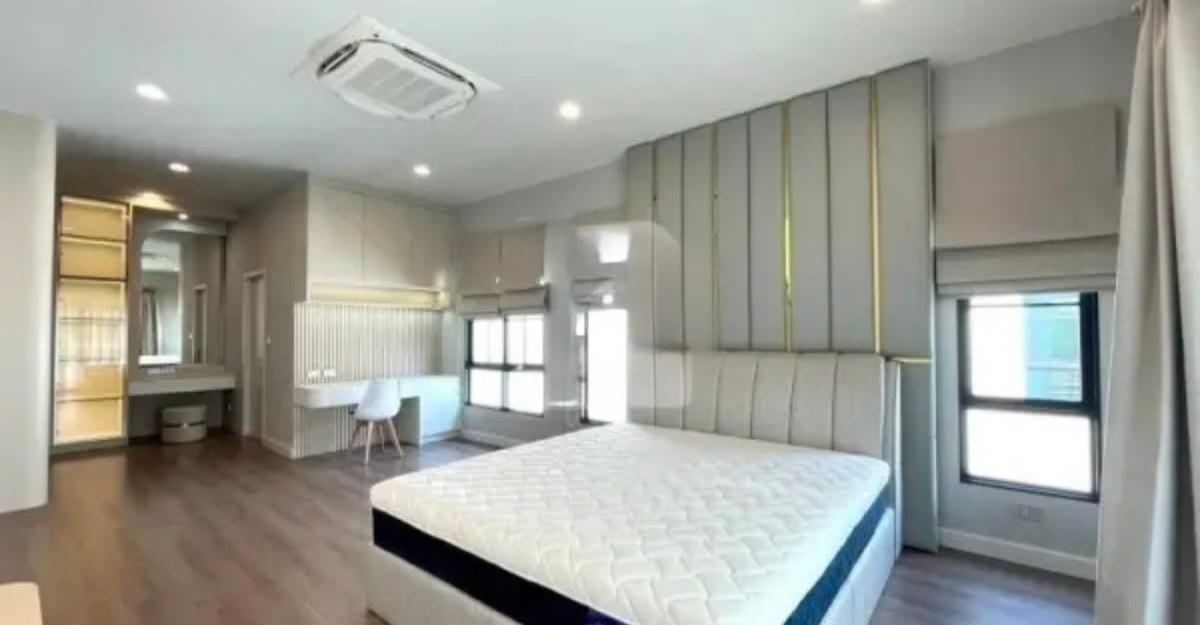 Premium detached house in the Setthasiri Bangna - Suvarnabhumi project, VICTORY house style, Modern Classic design that reflects timeless elegance. Located in the Private Zone, south direction, cool breeze all year round, suitable for families who want privacy and a superior quality of life. Near Verso International School (USA), which is one of the largest international schools in Thailand House details House model VICTORY Usable area 247 square meters Land area 63.20 square meters Internal functions 4 bedrooms 4 bathrooms 1 maids room with bathroom (Separated outside the house) Fully Furnished, ready to move in Price Selling for 19.5 million baht For rent 150,000 baht / month Highlights of the house 3-phase project electrical system supports heavy electricity use Sand-washed garage floor, 5 Daikin 4-way air conditioners EV Charger by ABB supports electric cars Solar Roof Top helps save on electricity costs. The master room has a hot water system. With sink, hot-cold water system , electrical sanitary ware Solar Cell system front doorbell saves energy Modern Classic design concept A design that combines classic elegance with contemporary. Gives a feeling of elegance, simplicity and uniqueness. Reflects the tastes of the residents perfectly Facilities within the project Private project for only 178 families Swimming pool, fitness center and common garden Digital Fence security system and LIV-24 Cooliving Designed Home innovation. Cool and comfortable home Install Solar Panels in every house to save energy Dust Free House system helps purify the air and reduce dust inside the house . If interested, ask for more details. Or make an appointment to visit the house LINE: @phenomenal.estate Tel: Contact number The Phenomenal Estate team is ready to provide advice and professional care