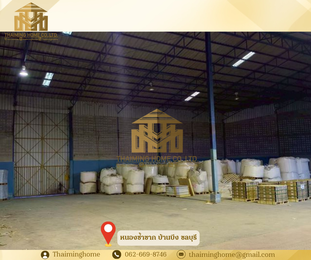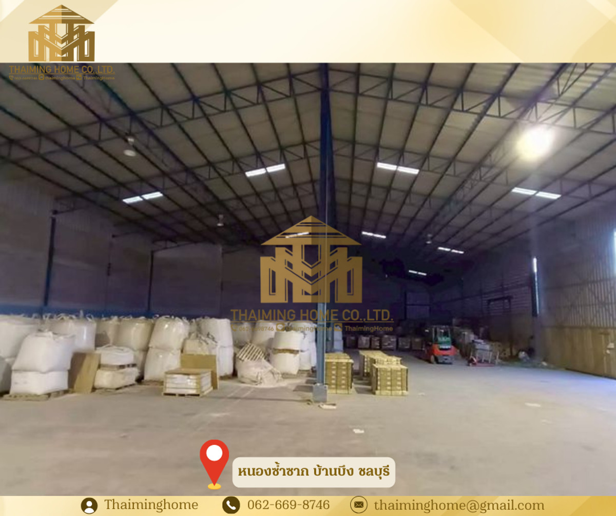 Warehouse for Rent, 1000 sq.m., Ban Bueng, Chonburi (Property Code TW4-1860326) Details - Warehouse area: 1000 sq.m. - Office space available. - Orange zone (residential/commercial). - Multiple access routes, convenient for trailer trucks. - Versatile and secure space. - 3-phase electricity. Nearby Locations - Close to Highway 344 Ban Bueng-Klaeng - Robinson Chonburi - Central Chonburi - Ban Bueng Hospital - Bang Saen Beach - Amata Nakorn Industrial Estate Rental Conditions - Minimum 3-year contract - 3-month security deposit - 1-month advance payment - Monthly rent: 80,000 THB ------------------------ บริษัท ไทยหมิง โฮม จำกัด Thaiming Home Co.,Ltd. 泰明房园 房产公司 ----------------------- Contact ติดต่อ : Contact number Contact : Contact number คุณหมิง(中文) Line ID: thaiminghome Line ID: @thaiminghome https://lin.ee/PkkHwYv Wechat : ThaimingHome E-mail : Contact email -----------------------