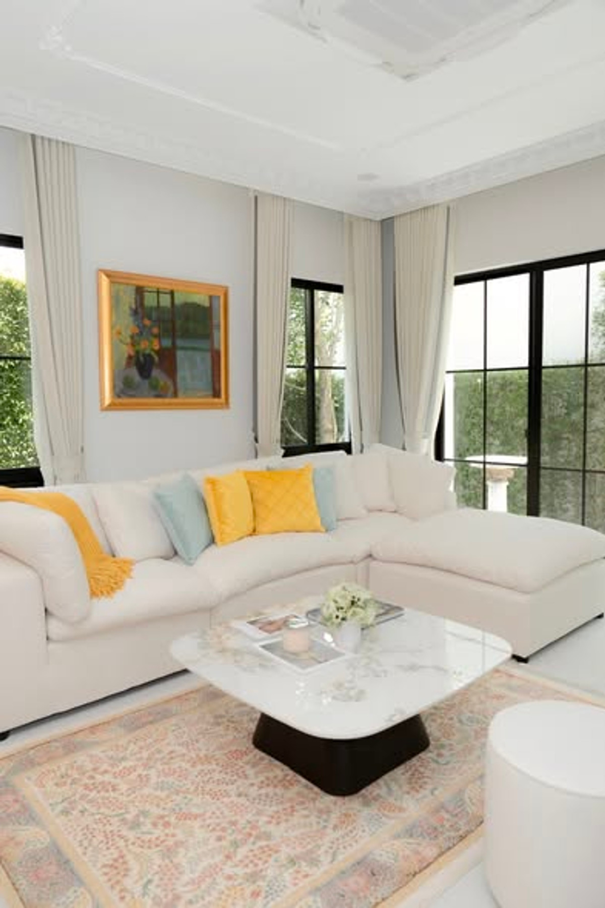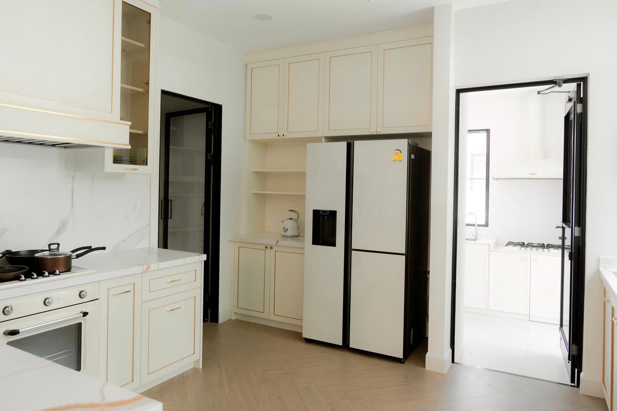 Luxury level detached house in a quality project Potential location Rama 9 - Krungthep Kreetha New Road Ready to move in, decorated in Modern French Chateau style, giving a warm, luxurious atmosphere. Complete with furniture and electrical appliances throughout. Suitable for families who want a beautiful home. Ready to move in immediately Corner plot provides high privacy. Wide garden area Shady atmosphere The inside of the house is meticulously decorated. With a premium standard kitchen The price has been specially reduced from 42 million baht to only 36 million baht, considered one of the best prices in the project Nantawan Rama 9 Project - Krungthep Kreetha New Road, Krungthep Kreetha Road Soi Kanchanaphisek 12, Saphan Sung Subdistrict, Bangkok Selling price 36,000,000 baht Transfer fee is half Property details Land area 107 square wah Usable area 302 square meters, house style Le Baron (Size S) 4 bedrooms , 5 bathrooms , 4 car parking spaces 1 maids room with en-suite bathroom , separate Western kitchen and Thai kitchen , equipped with oven and gas stove from Smeg brand, both Thai kitchen and Western kitchen. Adds elegance and fully meets the needs of use The house is decorated and ready to move in. Complete furniture and electrical appliances You can drag your bags in immediately If interested, ask for more details. Or make an appointment to see the house LINE: @phenomenal.estate Tel: Contact number The Phenomenal Estate team is ready to provide professional care and advice