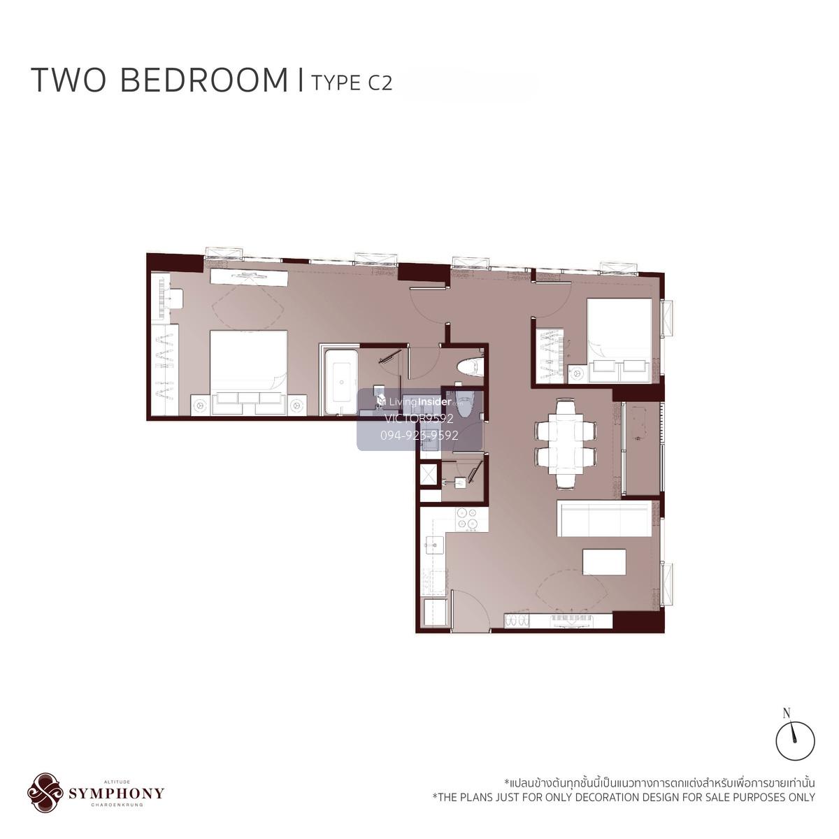 [LAST UNIT - Beautiful view on the 15th floor] 2 Bed, wide width, Rare Item! Altitude Symphony Charoenkrung | near Shrewsbury, only 400 m. Unit 2 bedrooms, 2 bathrooms with the most perfect layout (Type C2) on the 15th floor, receiving a northeastern city