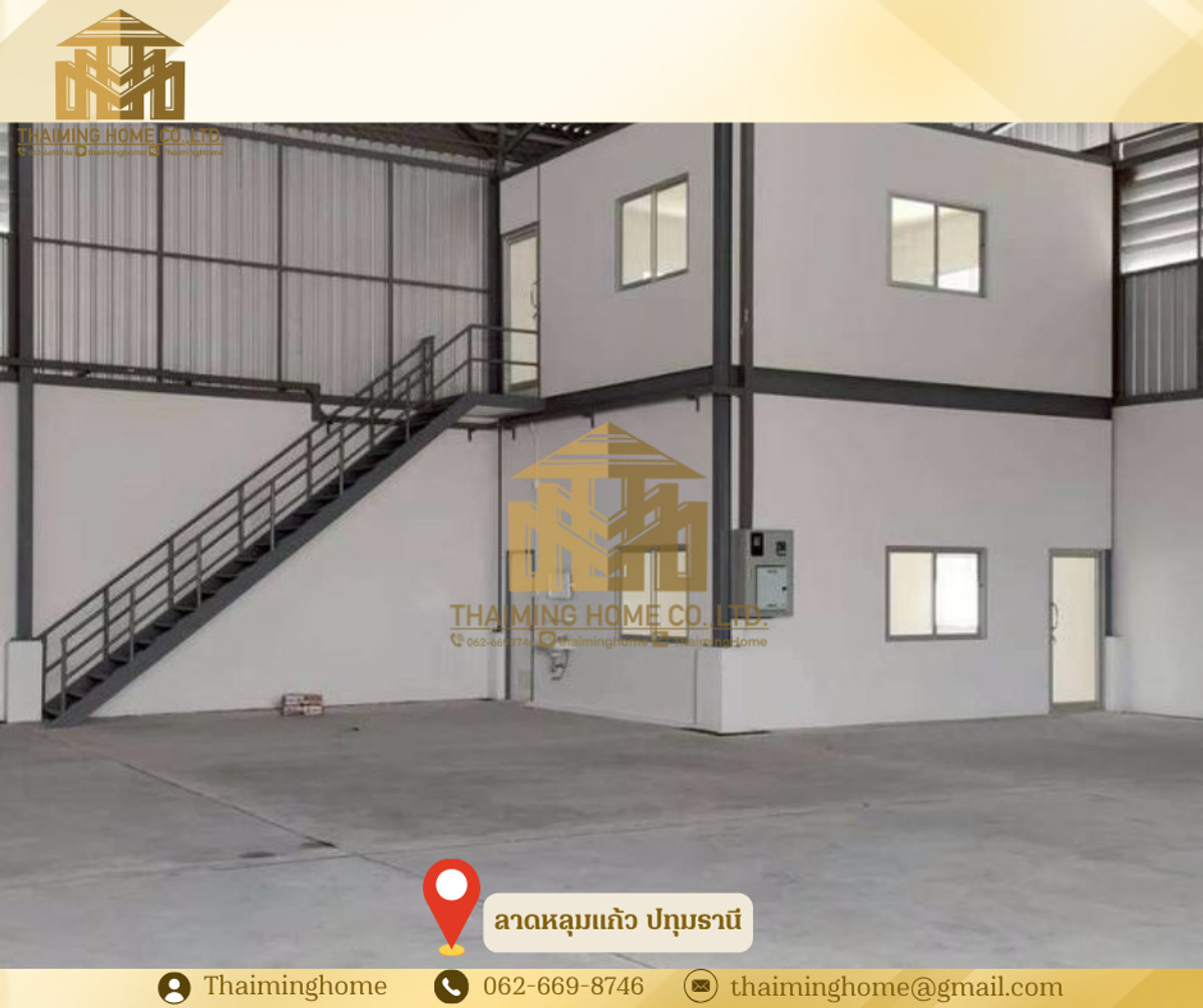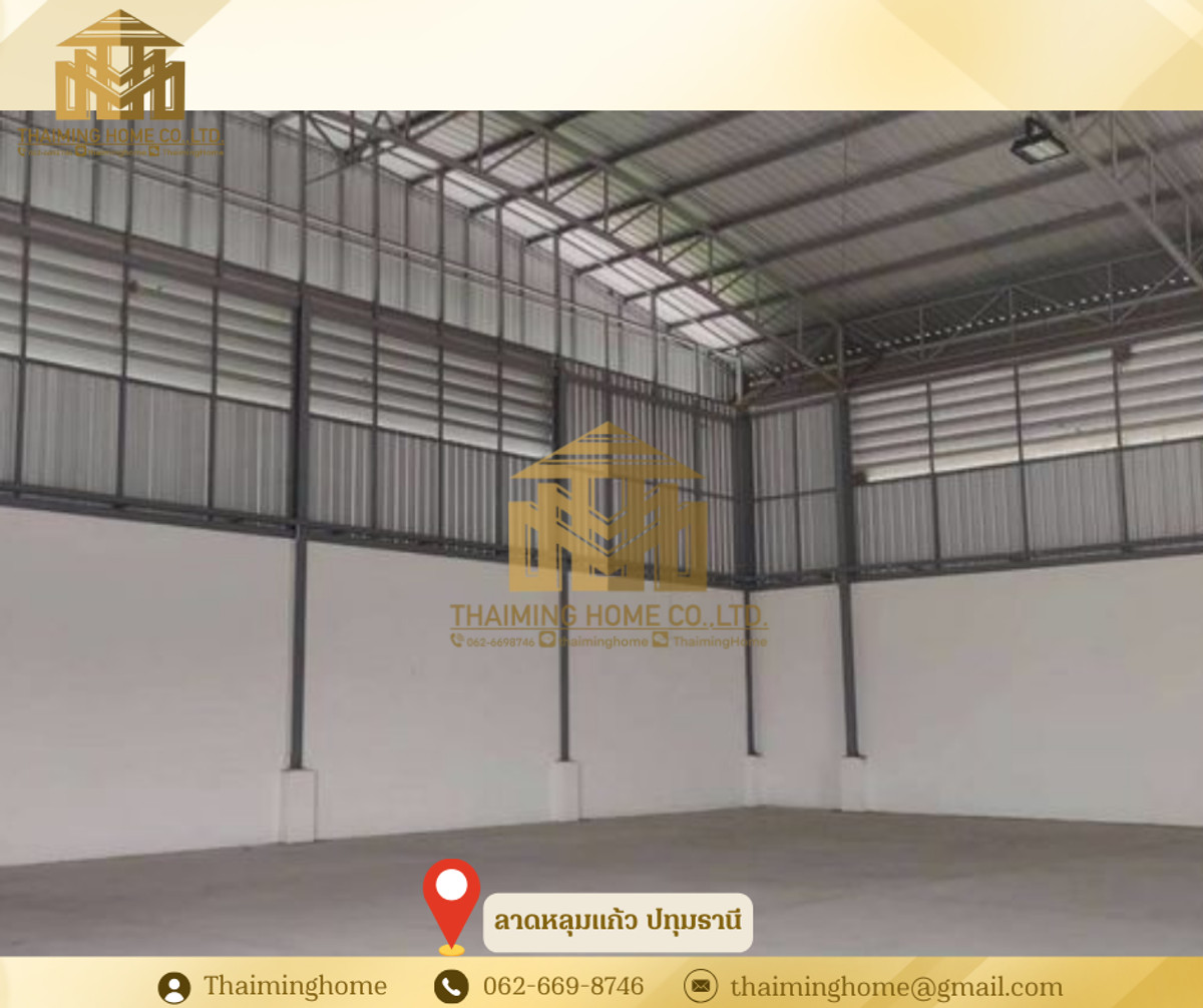 Warehouse for Rent, Lad Lum Kaeo, 550 sq.m., Lad Lum Kaeo, Pathum Thani (Property Code TW06-2426) Details - Area: 550 sq.m. - 2-story office: 30 sq.m. - 3 bathrooms - Load capacity: 3 tons/sq.m. - Accessible by large vehicles Nearby Locations - Noppawong Intersection - Tops Distribution Center - PT Gas Station, Lad Lum Kaeo Lease Agreement - 3-year contract - Security deposit: 200,000 baht - 1 month advance payment - Rent: 60,000 baht/month -------------------- บริษัท ไทยหมิง โฮม จำกัด Thaiming Home Co.,Ltd. 泰明房园 房产公司 ----------------------- Contact ติดต่อ : Contact number Contact : Contact number คุณหมิง(中文) Line ID: thaiminghome Line ID: @thaiminghome https://lin.ee/PkkHwYv Wechat : ThaimingHome E-mail : Contact email -----------------------
