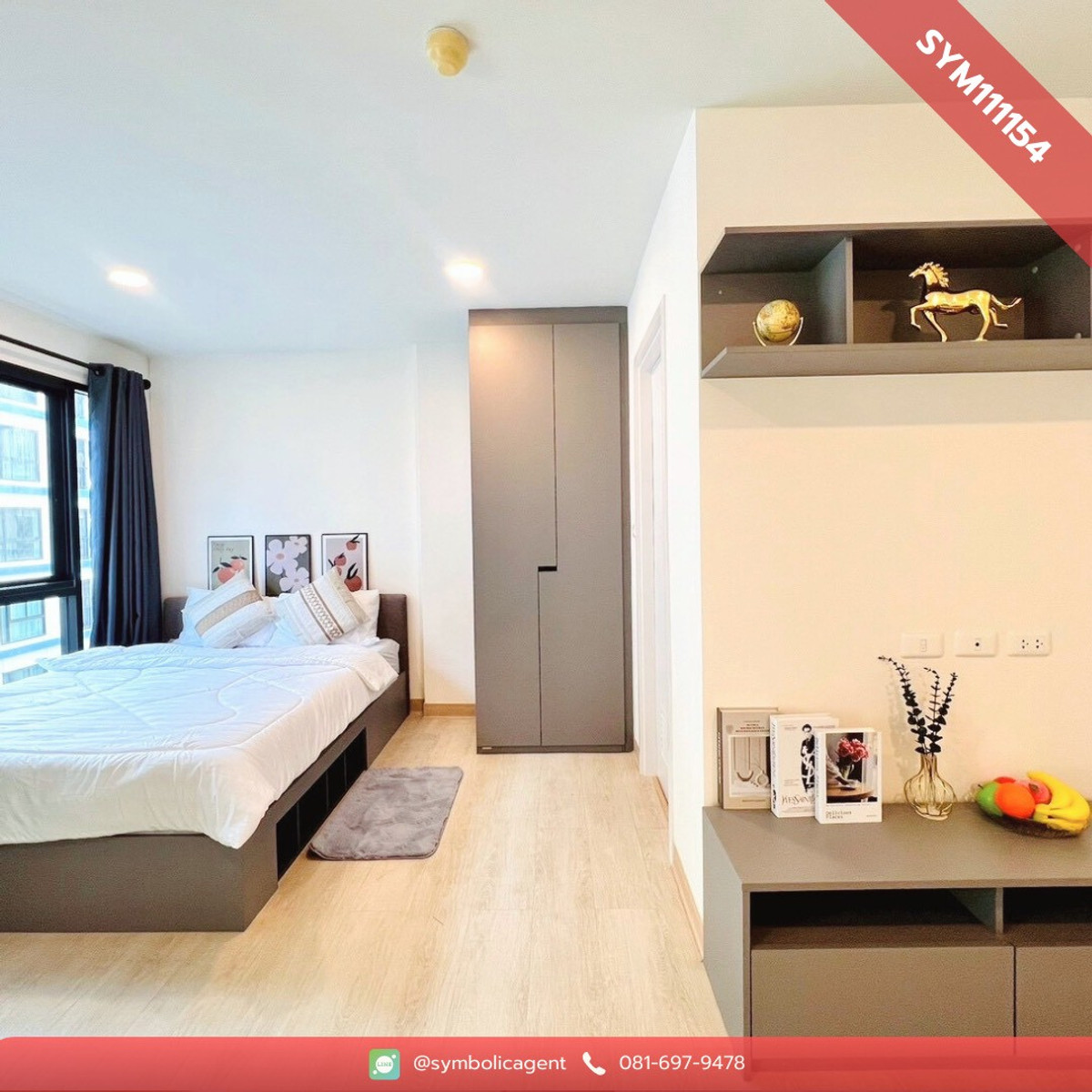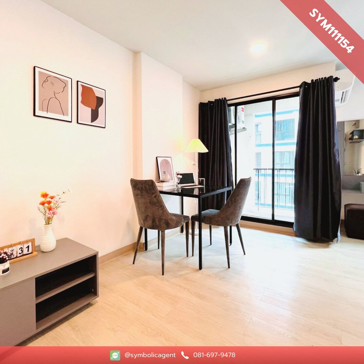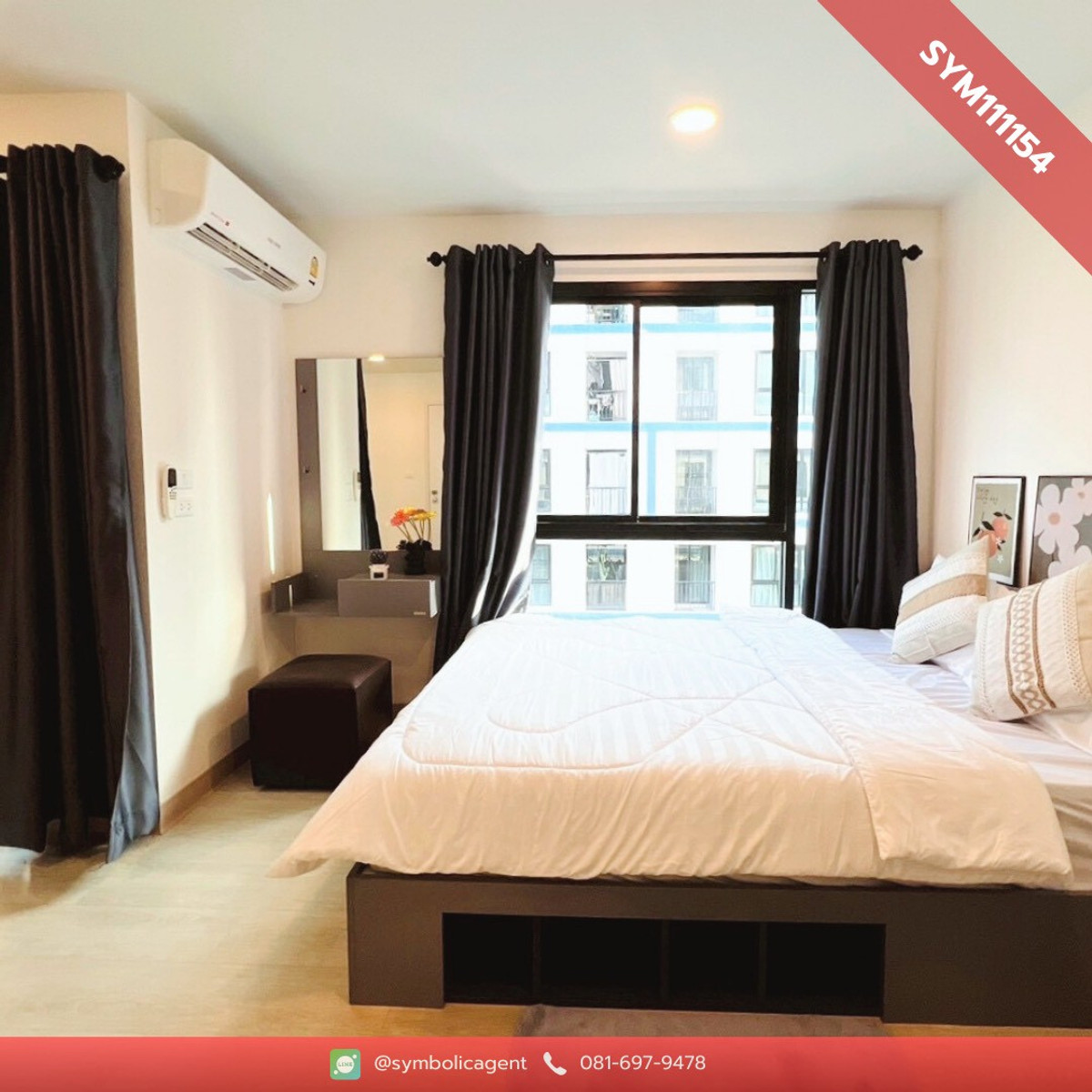 Beautiful condo, Wynn Thani project, fully furnished, ready to move in Details 🛏️ 1 bedroom 🛁 1 bathroom Floor: 5 Room size 23 sq m. 🌟 Fully furnished Bed + 5 foot mattress Built-in wardrobe Table + 2 chairs Body Curtain TV shelf Refrigerator Microwave Air conditioner 🌟 Project amenities Parking 24-hour security system CCTV (CCTV) Enter-exit with key card system Passenger elevator 📍 Nearby places Future Park Rangsit Zpell Bangkok University Thammasat University Rangsit Market Thai Market 💰 Rental price only 6,000 baht/month 2 months insurance + 1 month advance ☎️ If interested, contact: Contact number 💚 Add Line ID: @symbolicagent