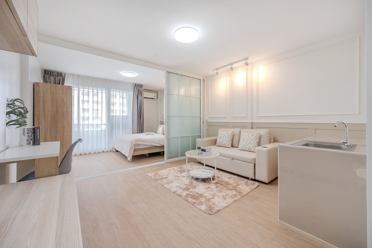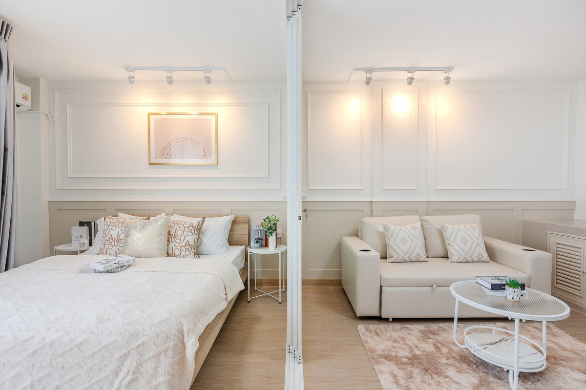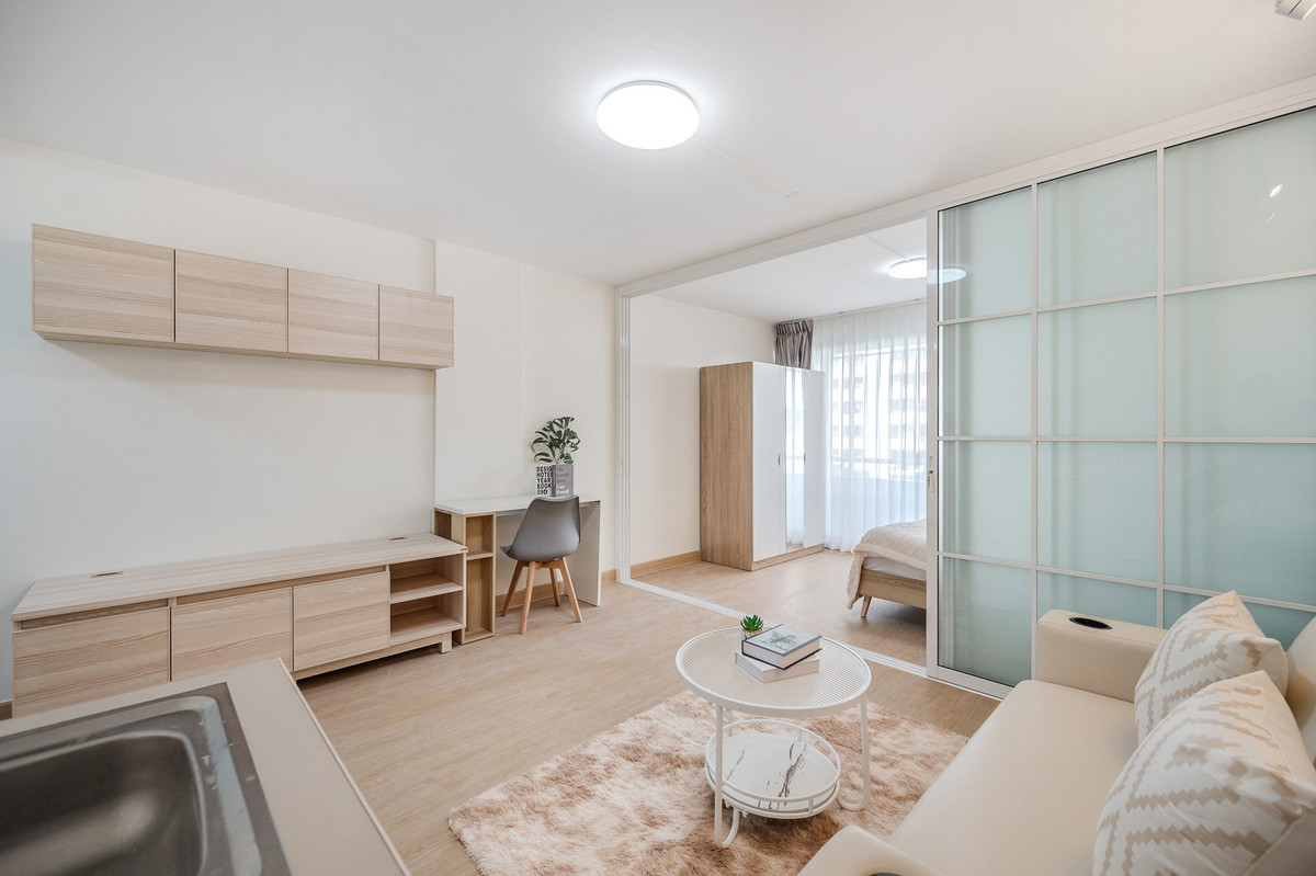 Resort style condo Close to The Mall Bangkapi, only 3 minutes✨ Next to the BTS only 300 meters, 4 minutes to Vejthani Hospital, easy installments starting at 5,xxx ✔️ Salary 15,xxx and up, can get a full loan 100% ✨ Condo City Villa Lat Phrao 130 • 1 bedroom, size 33 sq m. • 4th floor, pool view Wide balcony • Free air conditioning, free furniture Ready to move in . [Free!! Furniture and electrical appliances] ✓ Air conditioner, water heater ✓ 5-foot bed with mattress ✓ Wardrobe, TV shelf ✓ Double-layer curtain for UV protection ✓ Sofa bed, carpet ✓ Waterproof rubber tile floor . [Common area/nearby places] ✓ Common fee 15 baht/sq m. ✓ Motorcycle parking ✓ 24 hrs CCTV security ✓ Swimming pool ✓ Laundry shop ✓ convenience store