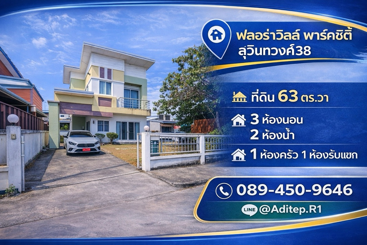 Single house for sale, ready to move in, Minburi, Floraville Park City Village, Soi Suwinthawong 38, area 63 sq m., 3 bedrooms, fully furnished, near MRT Property ID:  M11543 --- VDO: https://youtu.be/h6ofFZ5FObs --- Single house, Flora Ville Park City Suwinthawong Village (Flora Ville Park City Suwinthawong) Location Soi Suwinthawong 38, Suwinthawong Road, Lam Phak Chi Subdistrict, Nong Chok District, Bangkok Coordinates: https://maps.app.goo.gl/9LdcWovro61JyzZn9 Area 63 sq m Width 14 meters Usable area 175 sq m , size 2 floors , 3 bedrooms , 2 bathrooms , kitchen counter , parking for 1 car inside the house The front of the house faces south, receives good wind, the house is not hot with furniture 1 air conditioner --- **Selling for 3,900,000 baht (transfer fee is paid in half)** --- **Features :** If you are looking for a **single house, wide area for a family** in the Suwinthawong - Min Buri zone. This house is considered a very interesting choice. Because it has a large land area of ​​**63 Square wa** with usable area **approximately 175 square meters** for you and your family to live comfortably The house is located in **Floraville Park City Village, Soi Suwinthawong. 38** Calm atmosphere Suitable for real living. Complete with amenities within the project The house is a 2-story detached house with 3 bedrooms, 2 bathrooms, 1 kitchen, 1 living room, can park 1 car in the house. The front of the house faces south, receives good wind, is comfortable to live in, the ground floor is paved with granite countertops. The upper floor is covered with laminate. Suitable for both beginner families To families who want to expand their living space for their children to have a study corner, a play corner, and more space to live together ### "Buy and move in right away" with many free items, including Bed | Dining table | Sofa | Curtains | TV stand | 120 cm work desk | Childrens homework table | Worship table in front of 5 | Cooking gas | Kitchen counter set **Furniture value received without paying extra** This is a significant savings for a family that has just moved . ### Convenient location for travel - An important strength of the project The project has 3 entrances, both on Suwinthawong Road and Chalong Krung Road, close to the MRT Pink Line and Orange Line. Near the outer ring road and the motorway. And close to Suvarnabhumi Airport about 15 minutes 🚇 **MRT Orange Line** (Bang Khun Non – Suwinthawong) — Suwinthawong Line terminal station 🚇 **MRT Pink Line** — Connect Minburi to Nonthaburi ✈️ **Suvarnabhumi Airport** — approximately 15 minutes by car. 🛣️ **Outer Ring Road + Motorway** — Convenient to travel to other provinces 🏭 **Lat Krabang Industrial Estate** — Can be penetrated through Soi Chalong Krung 53 **Project entry route:** Ramkhamhaeng Road (In front of Minburi Waterworks Station) → Suwinthawong Road → U-turn → Floraville Park City Village (Soi Suwinthawong 38) # Who is this house suitable for - Families who want to move from a **condo or townhome. Came to live in a single house** - People working in the zone **Minburi, Lat Krabang, Suwinthawong, Chalongkrung**- Families with children and wanting more living space - People looking for a house ready to move in In the budget of **3 million more** --- ### Nearby places : - Lotus Nong Chok - Big C Nong Chok - Mahanakorn University of Technology and King Mongkuts Institute of Technology Ladkrabang - Nong Chok Hospital - Korean International School Bangkok - Jiandup School - Nong Chok District Office - Lam Phakchi Metropolitan Police Station - Metropolitan Electricity Authority, Minburi District - Suwinthawong 11 Stadium - Bangkok Arena Futsal Stadium - Windsor Park and Golf Club- Ranont Golf View and Sports Club --- For more details, contact Mr. Adithep Paramonthat Realty One Estate (Thailand) Co., Ltd. Tel: Contact number LINE: @aditep.r1 or http://line.me/ti/p/@aditep.r1 email: Contact email WhatsApp: Contact number Facebook: [www.facebook.com/ArchangelProperty](http://www.facebook.com/ArchangelProperty) Website: [http://www.archangelproperty.com](http://www.archangelproperty.com/) #Single house for sale #second hand detached house #Single house ready to move in #Secondhand house ready to move in #House for sale in Bangkok #Single house Suwinthawong #Single house Minburi #Single house Nong Chok #Baan Suwinthawong 38 #Baan Zone Suwinthawong #Floraville Park City #FloravilleParkCity #Floraville House #3 bedroom house #2-storey detached house #House with lots of space #House for a family #House with garden #House ready to move in #First house #Buy a house instead of renting #House with a budget of 3 million #House priced at 3 million #House near Minburi #House near Lat Krabang #House near Suvarnabhumi Airport #House near Lat Krabang Industrial Estate #real estate #RealEstateThailand #PropertyThailand