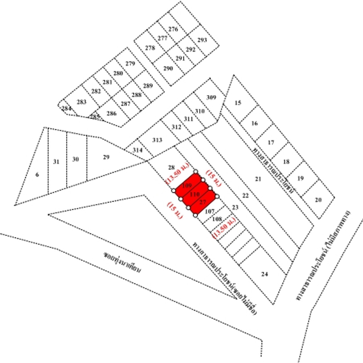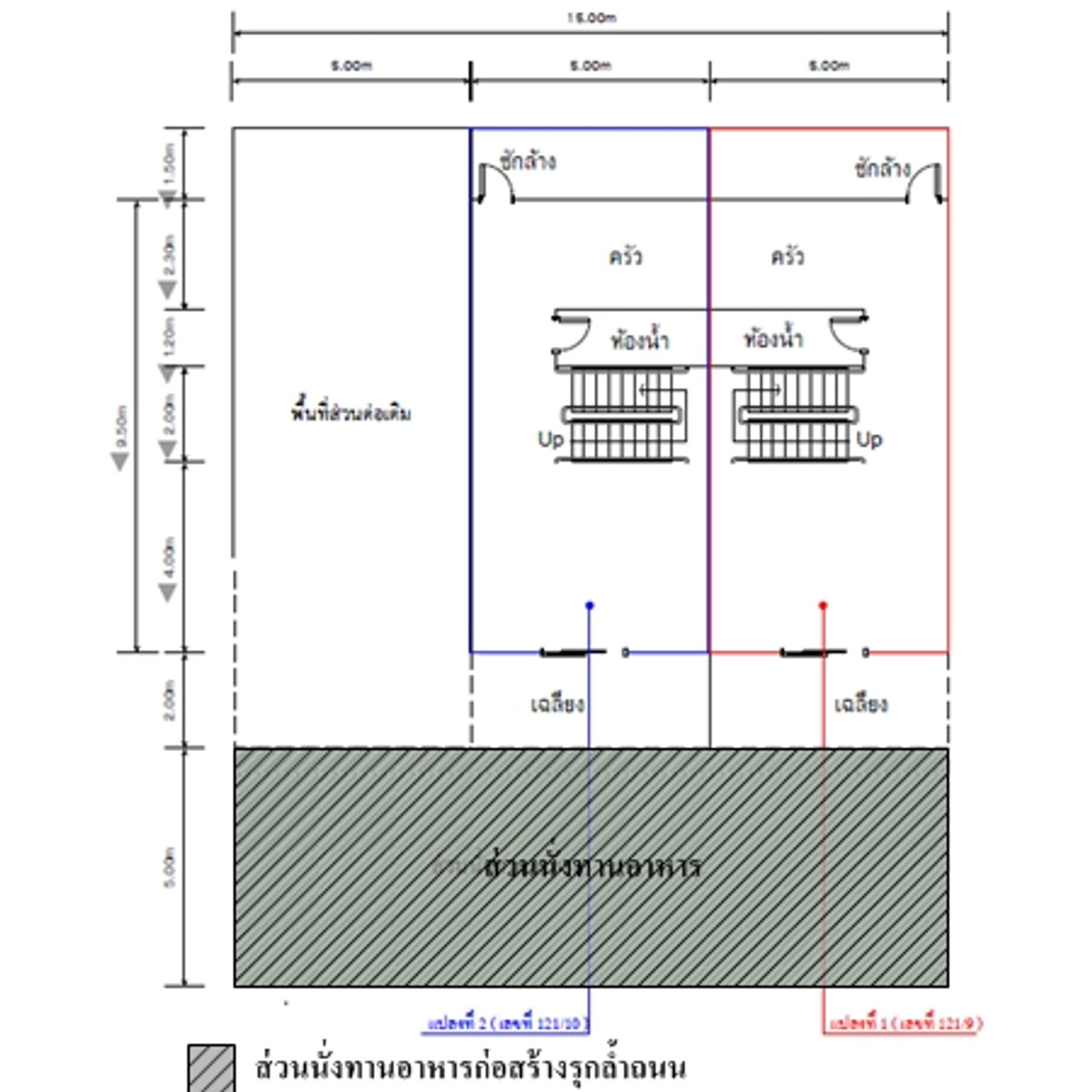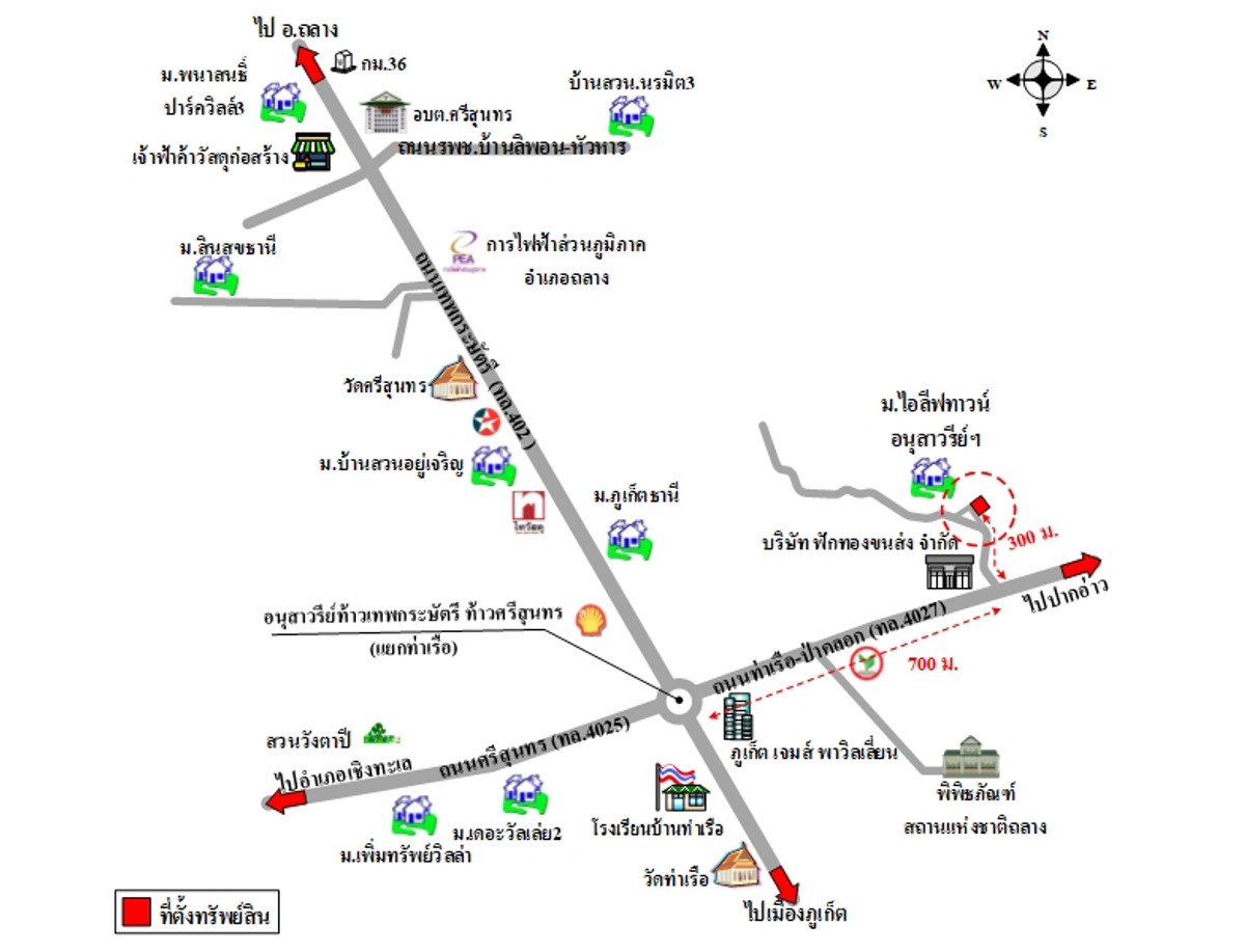 3 plots of land in a row rectangular The size of the land plot on the south side next to the road is approximately 15 m wide and approximately 13.5 m deep. Buildings Consisting of 1. 2-storey shophouse No. 121/9 2. 2-storey shophouse No. 121/10 The road passes in front of the property. It is a public road. The reinforced concrete road surface is approximately 5 m wide. The road area is approximately 11 m wide. Note: - The property is located in a residential, agricultural and commercial area. Convenient transportation - Approximately 1 km from the Thao Thep Kasattri and Thao Sri Sunthon monument - Information from the survey found that the front of the building on the side connecting to public roads has been constructed as an open area with a covered roof encroaching on public roads . If interested, contact Oil Contact number.