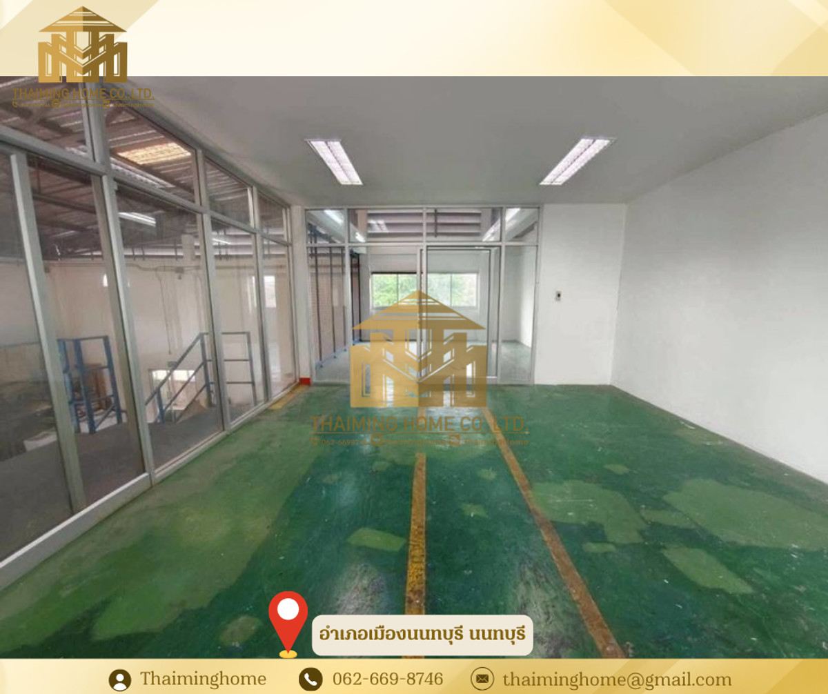 Warehouse with 2-story office for rent, 300 sq.m., Mueang Nonthaburi District, Nonthaburi (Property Code TW06-2826) Details - Area: 300 sq.m. - 2-story office - 4 restrooms (2 male / 2 female) - 3-phase electricity - Truck access available - Suitable for warehousing / distribution / office Nearby locations - Big C Tiwanon - Nonthaburi Public Health Center Rental Conditions - 3-year contract - 3-month security deposit - 1-month advance payment - Rental price: 100,000 THB/month ------------------ บริษัท ไทยหมิง โฮม จำกัด Thaiming Home Co.,Ltd. 泰明房园 房产公司 ----------------------- Contact ติดต่อ : Contact number Contact : Contact number คุณหมิง(中文) Line ID: thaiminghome Line ID: @thaiminghome https://lin.ee/PkkHwYv Wechat : ThaimingHome E-mail : Contact email -----------------------