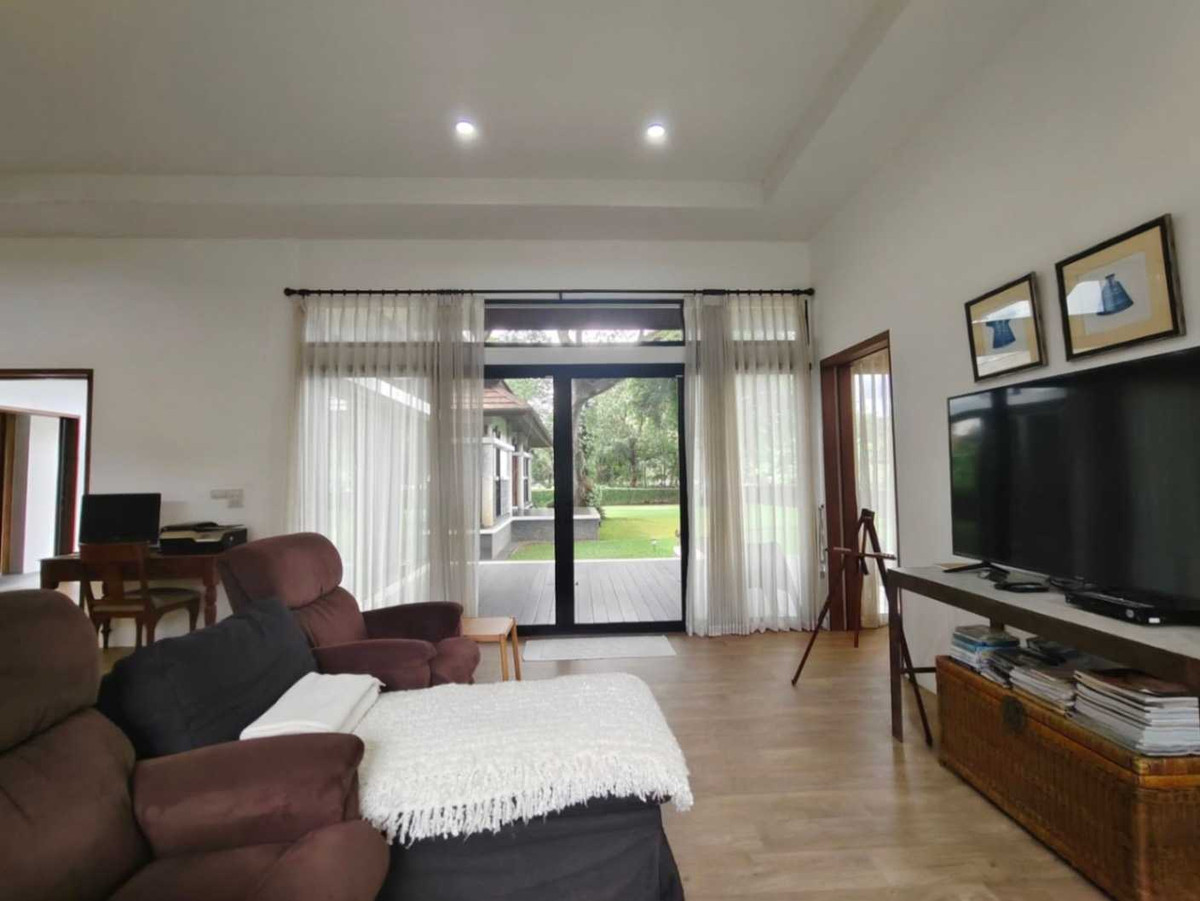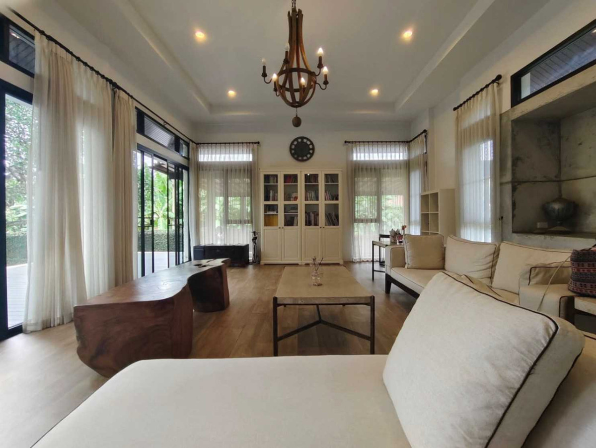 For Sale or Rent: Expansive Garden Villa & Private Retreat Near Ruamchok, Chiang Mai Property Highlights: Botanical Sanctuary: Nestled on nearly 1 Rai (384 sq. wah) of land, featuring over 10 large mature trees that provide natural cooling and fresh air all year round. Immaculate Condition: A "like-new" property meticulously maintained by the owner and used as a private vacation home only once a year. Architectural Harmony: Two interconnected buildings designed with an "Indoor-Outdoor" concept, featuring glass walkways and large windows that offer garden views from every room. Versatile Commercial Potential: Due to its serene atmosphere and prime location, this property is ideal for: Boutique Resort or AirBnB. Garden Café or Signature Restaurant. Wellness Center, Luxury Spa, or Thai Holistic Medical Center. Asset Information: Asset Code: L085259 Property Type: Single-Detached Garden Villa Land Size: 384.00 sq. wah (0-3-84 Rai) Layout: 3 Bedrooms, 4 Bathrooms (including a large glass-walled activity room, grand living hall, and formal dining area). Parking: Ample space for multiple vehicles and outdoor activities. Detailed Interior Features: Grand Living Hall: Spacious and airy with panoramic views of the lush greenery. Glass Corridor: A stunning glass-walled walkway connecting the two houses, surrounded by nature on both sides. Chef’s Kitchen: Large, clean, and modern with a dedicated garden view. Open Deck: A wide front terrace that flows seamlessly into the expansive lawn, perfect for outdoor events. Bathrooms: Large, well-ventilated designs that embrace natural light and fresh air. Rental Terms & Pet Policy: Residential (No Pets): 60,000 THB / Month (Deposit: 2 Months + 1 Month Advance). Small Pets (1-2 Dogs/Cats): 60,000 THB / Month (Deposit: 3 Months + 1 Month Advance). Large Pets: 80,000 THB / Month (Deposit: 3 Months + 1 Month Advance). Nearby Locations: Shopping & Dining: Close to Ruamchok Mall/Market. City Access: Conveniently located for quick trips into Chiang Mai Old City and easy access to major outbound highways.