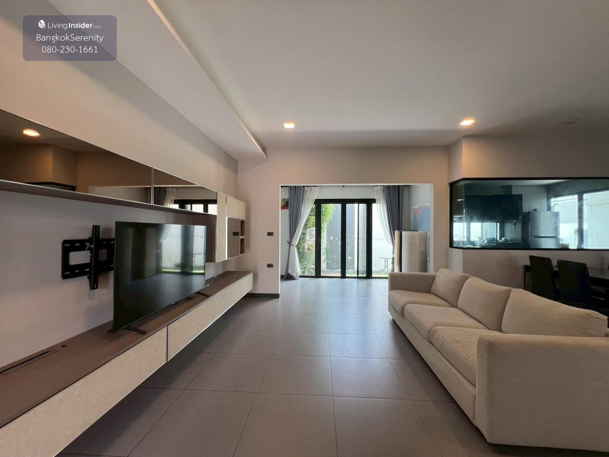 Pet Friendly Townhouse for rent at Vive Bangna Km.7 - The house located in a corner plot - 3 Bedrooms, 4 bathrooms, - Plus maid room - Living space is about 225 sqms+ - Fully furnished - For rent 65,000 baht/month