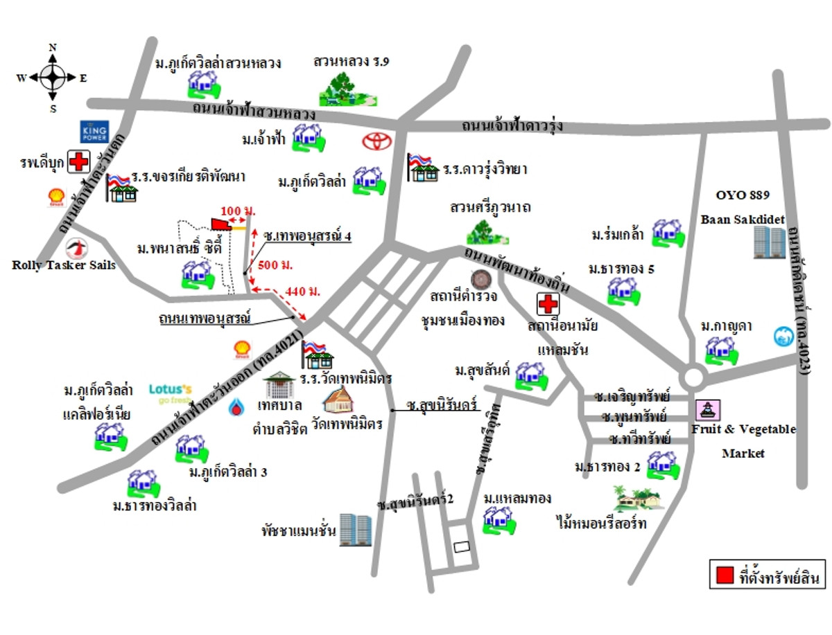 2 consecutive plots of land is a polygon There is no side of the land plot adjacent to a public road. Land plot size on the east side is approximately 80 m wide. On the north side, next to the public utility canal, width is approximately 152 m., maximum depth is approximately 171 m. Entrance-exit property. It is a private road, including land title deed no. 30288, 8412, 80866, 80868. The servitude to the property plot has not yet been registered. Earth traffic surface, width approximately 4 m. Note : - The property is located in a residential area - Approximately 100 m. away from the point where there is a public utility system - Nearby important places include Thepnimit Market, Wichit Subdistrict Municipality. and Grocery Department Store, Chao Fa Branch, etc. If interested, contact Oil Contact number