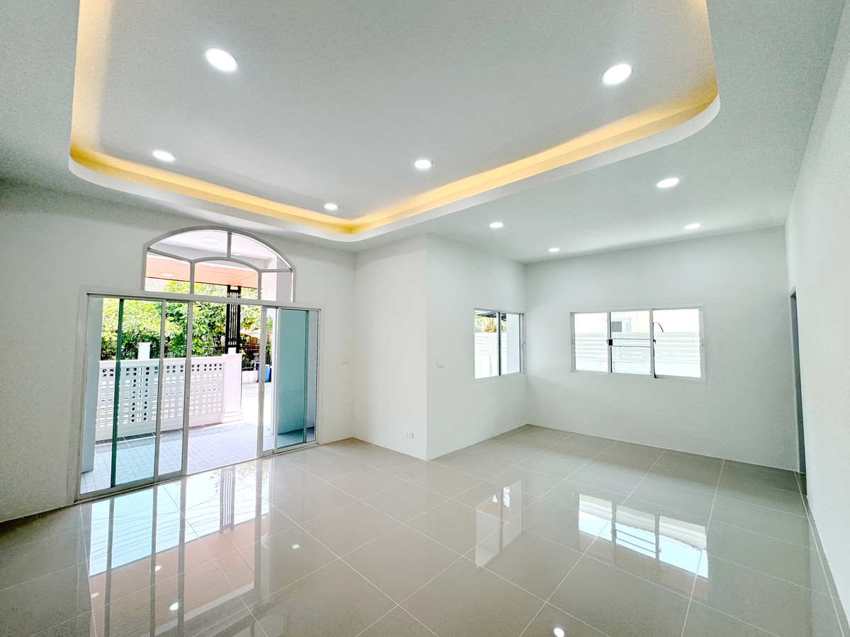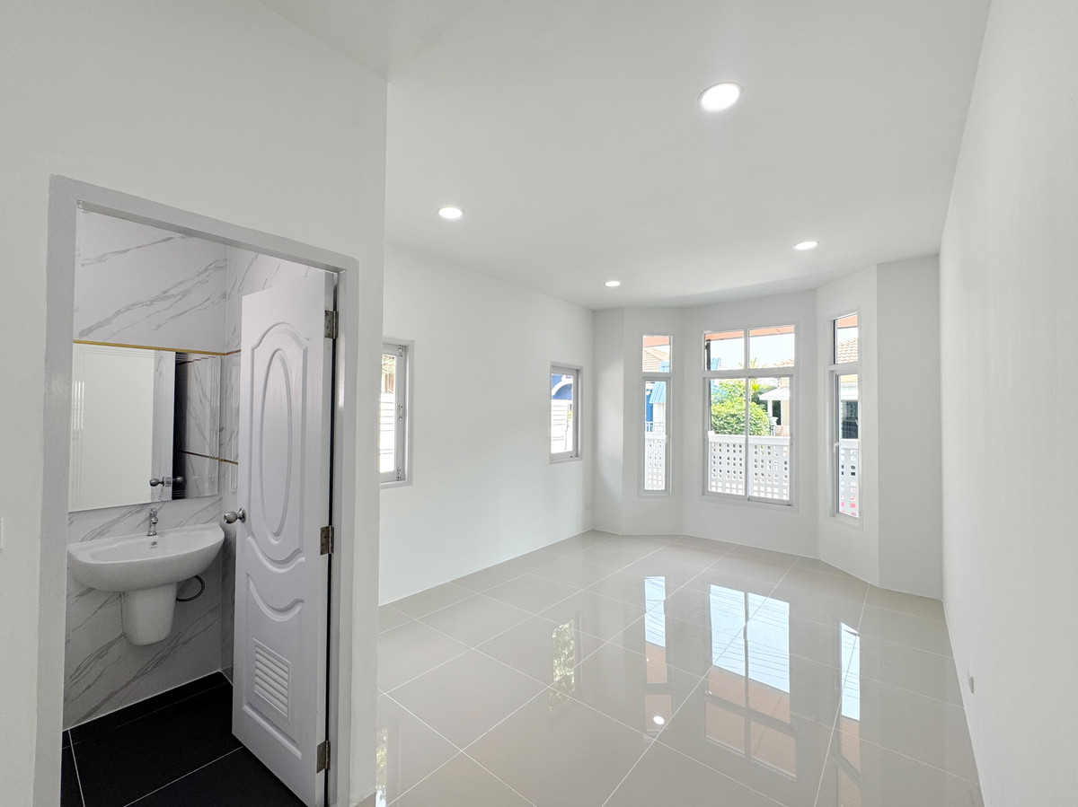 Renovated 1-story detached house, ready to move in. Good location Pruksa Village 1 Location: Soi 34 Bueng Kham Proi, Thetsaban Lam Luk Ka Road 1, Bueng Kham Proi Subdistrict, Lam Luk Ka District, Pathum Thani Province 12150 Details -Area 50.8 sq m. -3 bedrooms -2 bathrooms -1 kitchen -1 Hall -2 parking spaces -Newly renovated house ready to move in - Adding a roof to the garage in front of the house - New granite tile flooring throughout the house. -Change the bathroom sanitary ware. -Add a roof to the washing area behind the house with a new kitchen counter. -has a gas stove, dishwashing sink, range hood -replaces all new LED lights -free water pump – new water tank Nearby places -Maruay Hathairat Market -Wongsakorn Market -HomePro Lam Luk Ka Khlong Department Store 5 -Big C Lam Luk Ka Department Store -Wat Chaeng Lam Hin School -Sarasas Saimai School -CGH Hospital Saimai -Saimai Hospital Travel -Lam Luk Ka Municipal Road 1 -Hathairat Road -Saimai Road -Bangna Bang Pa-in Expressway Road Map: https://shorturl.at/prSzZ If interested, contact Mobile: Contact number (Khun Thanong) Call center: Contact number