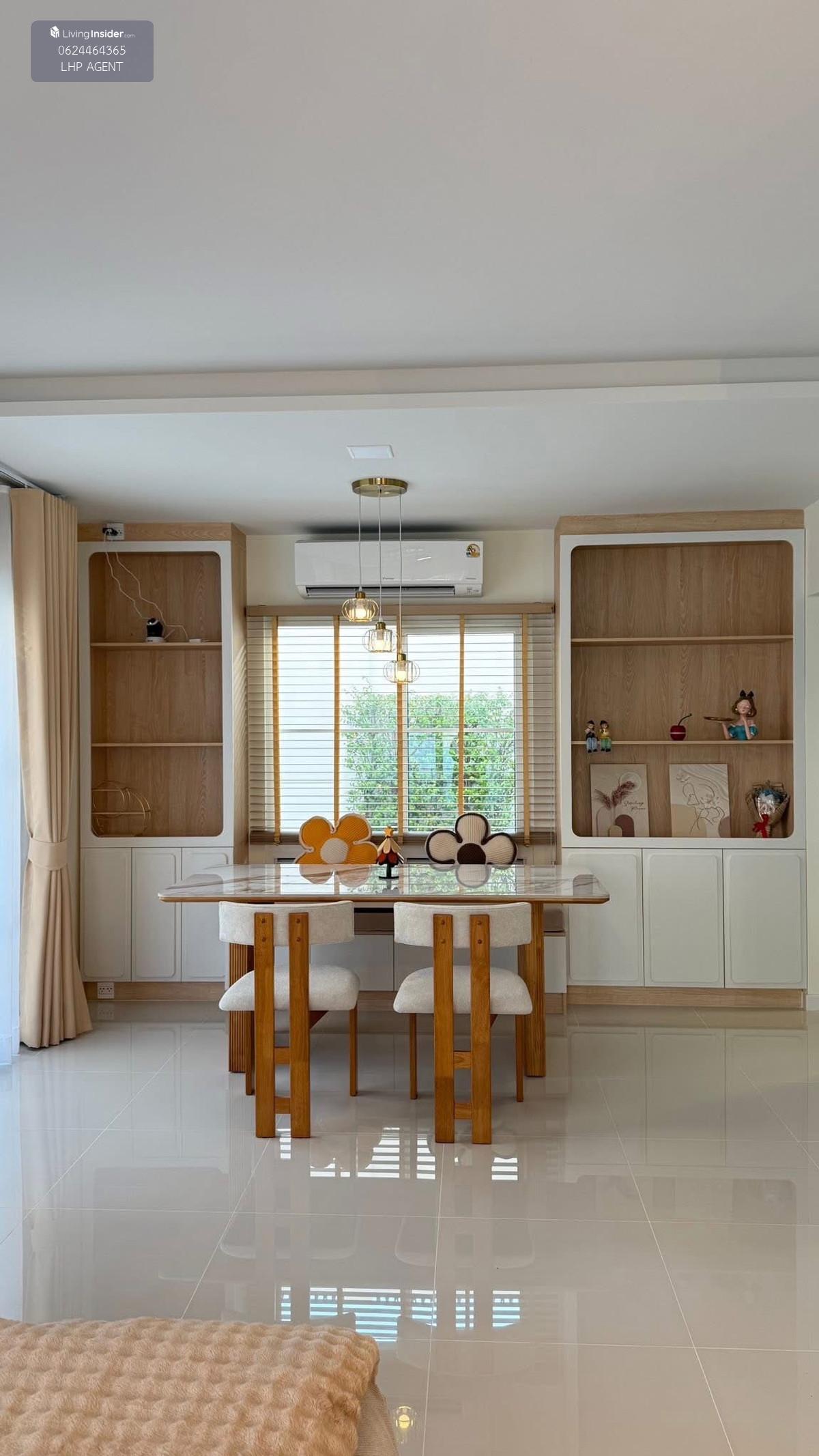 Single house for rent, Villaggio 3 Srinakarin Bangna, Villaggio 3 Srinakarin-Bangna , Comfy house style, large land plot, north direction. House on deep land, parking for 4 cars, land 74.8 sq m, usable area 153 sq m , 4 bedrooms , 3 bathrooms , 4 parking spaces , digital door lock , 5 air conditioners , dining table , TV 65 inches , refrigerator 16.2 cu. , water heater 3 , washing machine 13kg-dryer 8kg Beautifully decorated garden Free common fees Car license plate reading system Awning behind the house 2 keycard fitness Project amenities - Lake - CCTV - 24 hour security -Fitness Room -Library Room -Playground -Relaxation garden amidst nature -Camping Ville atmosphere -Co-working Space -Clubhouse building -Salt system swimming pool Separate childrens/adult pool Nearby places Concordian International School 5 Km. Thai Singapore International School 5 Km. Mega Bangna 7 km. Monthly rent 85,000฿/month, minimum contract 1 year , deposit 2 months, advance 1 month Tel. Contact number