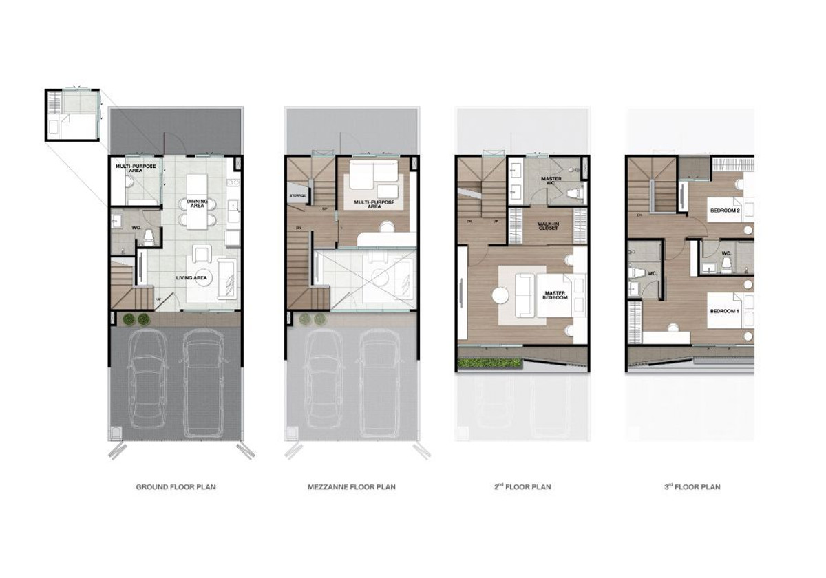 🏠 รายละเอียดบ้าน (Unit Detail): • รูปแบบ: ทาวน์โฮม 3.5 ชั้น หน้ากว้าง 5.5 เมตร • พื้นที่ดิน: 19 – 48.8 ตร.วา | พื้นที่ใช้สอย: 194 ตร.ม. • ฟังก์ชัน: 4 ห้องนอน | 4 ห้องน้ำ | 1 ห้องนั่งเล่น | 1 ห้องครัว