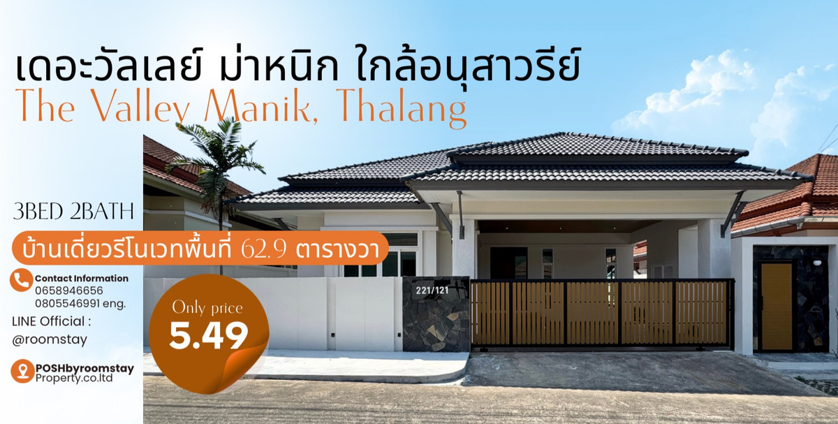 บ้านเดี่ยวรีโนเวทใหม่ ทำเลใกล้อนุสาวรีย์ และโรบินสันไลฟ์สไตล์เพียง 2 นาที 🚩หมู่บ้าน เดอะวัลเลย์ ม่าหนิก ถลาง บ้านเดียวชั้นเดียวรีโนเวทใหม่ทั้งหลัง ต่อเติมพื้นที่หน้าบ้านและหลังบ้าน ดีไซน์เพิ่มมุมกระจกทำให้แสงธรรมชาติเข้าสู่ตัวบ้านได้มากขึ้น บรรยากาศดูโปร่งโล่ง ถนนหน้าบ้านกว้างไม่แออัด ต่อเติมเคาน์เตอร์ครัว ตัวบ้านประกอบด้วย 3ห้องนอน 2ห้องน้ำ พื้นที่ 62.9 ตารางวา ┏━━━━━━━━━━━━━┓ ราคา 5,490,000 บาท ┗━━━━━━━━━━━━━┛ Newly renovated single house in a prime location near the Monument and Robinson Lifestyle, just 2 minutes away 🚩 The Valley, Manik, Thalang Fully renovated single-storey house Extended front and backyard areas Designed with additional glass corners to allow more natural light into the home Bright, airy, and spacious atmosphere Wide road in front of the house, not crowded Built-in kitchen counter 3 bedrooms, 2 bathrooms Land area: 62.9 sq.w. (251.6sq.m.) ⚫️ #บริษัทพอชบายรูมสเตย์พร็อพเพอร์ตี้ 🕳️ บริการเช็คเครดิต • คำนวณความสามารถในการกู้ • คำนวณอัตราผ่อนแต่ละเดือน 🕳️ We excel in sales and adeptly manage the trading operations for international clientele ➖➖➖➖➖➖➖➖➖➖➖➖➖➖➖➖➖ ☎️ More information, Please do not hesitate to contact us Contact number คุณแนน Contact number K.Ping (eng.) Line: @roomstay สอบถามข้อมูลทาง LINE สะดวกกว่าค่ะมีแอดมินดูแล https://lin.ee/aLaoTiw [ POSHBYROOMSTAYPROPERTY.CO.,LTD ] 📌 ชมรีวิวบ้านสวยๆได้ทาง https://www.tiktok.com/@poshbyroomstay?_t=8kTog2ffG59&_r=1 #บริษัทพอชบายรูมสเตย์พร็อพเพอร์ตี้