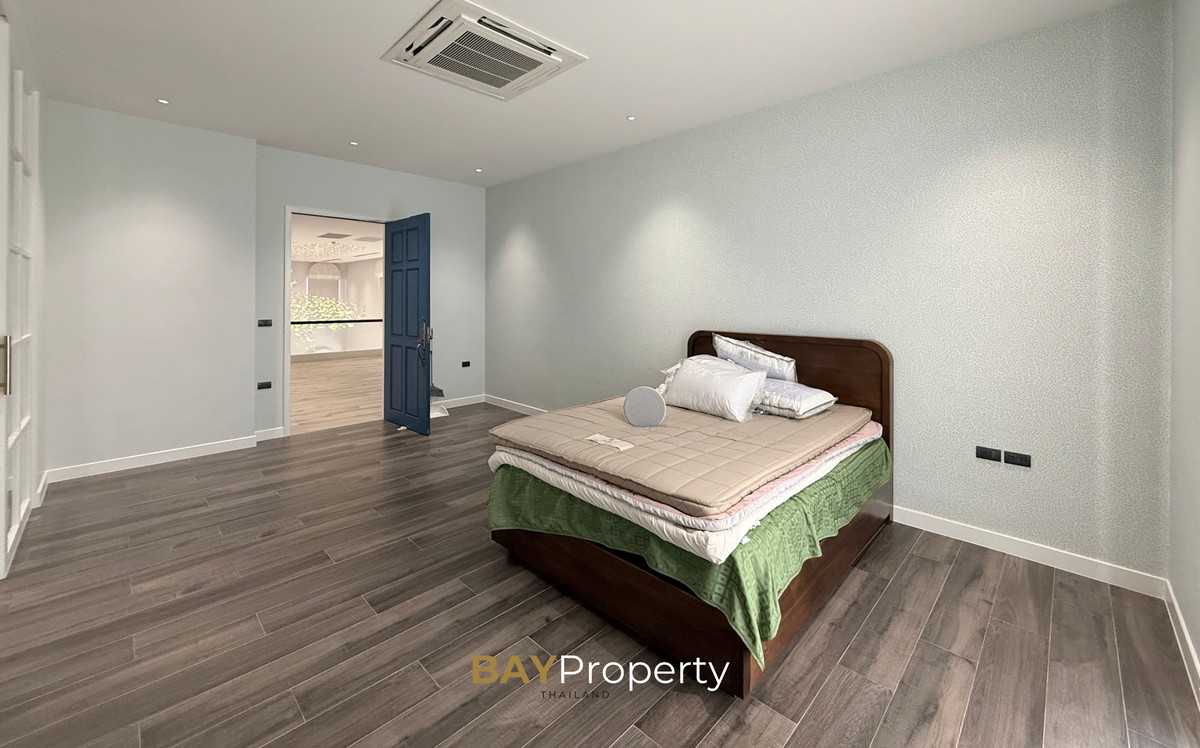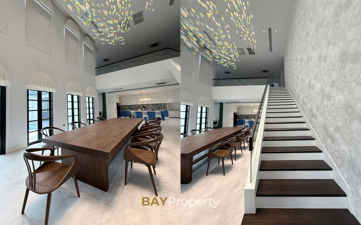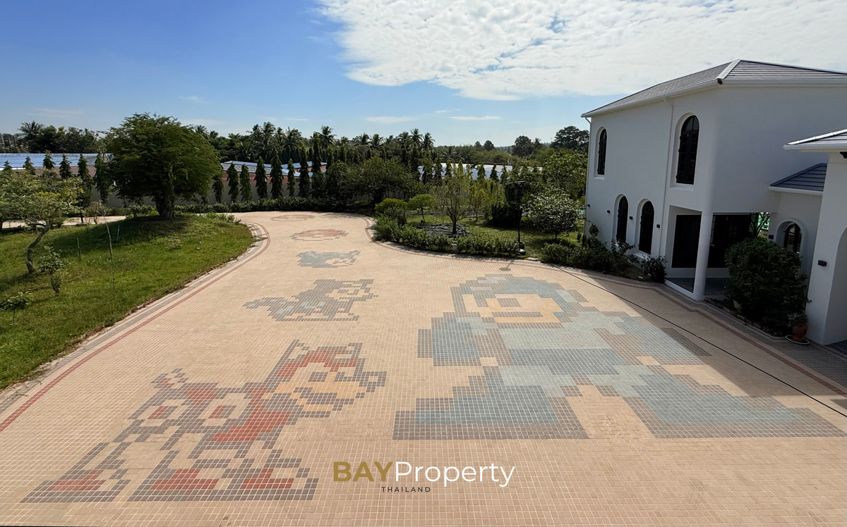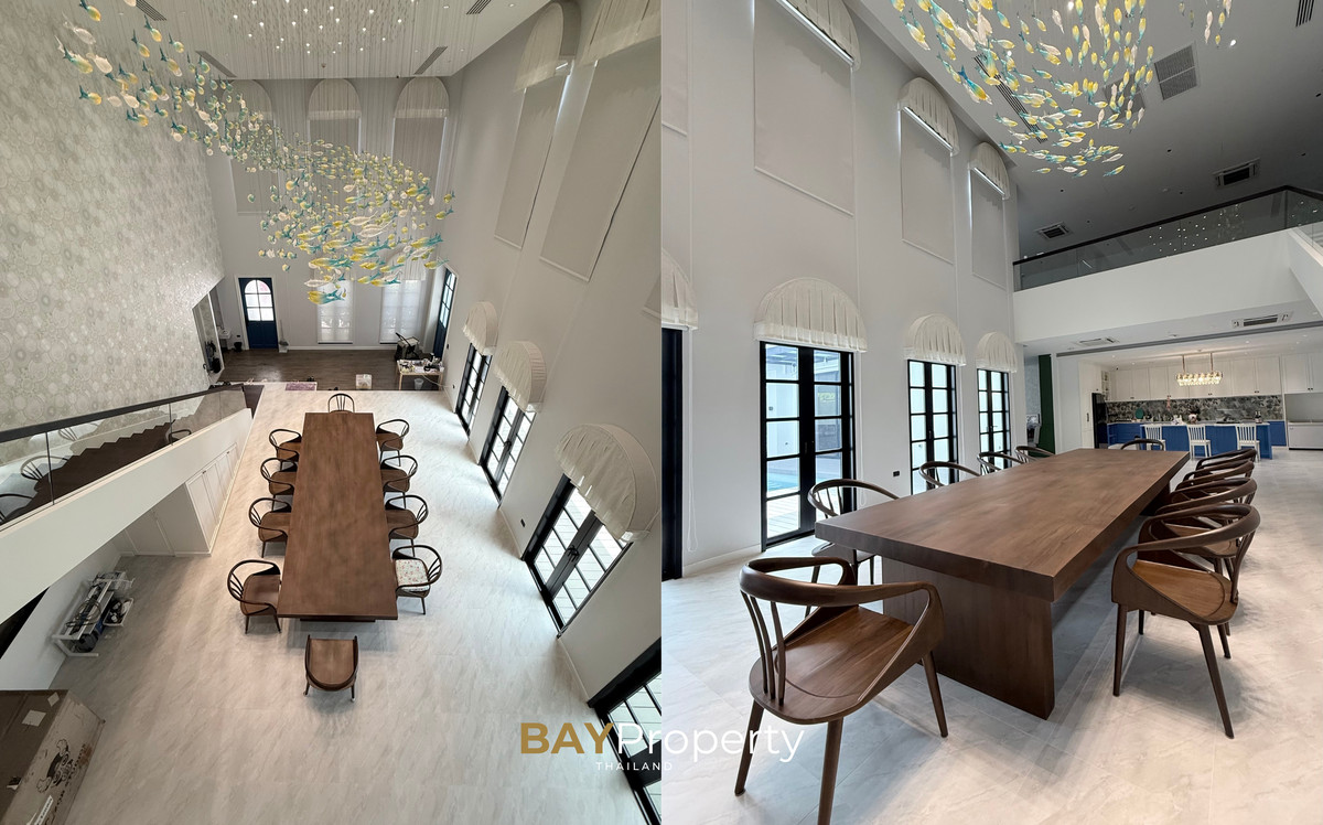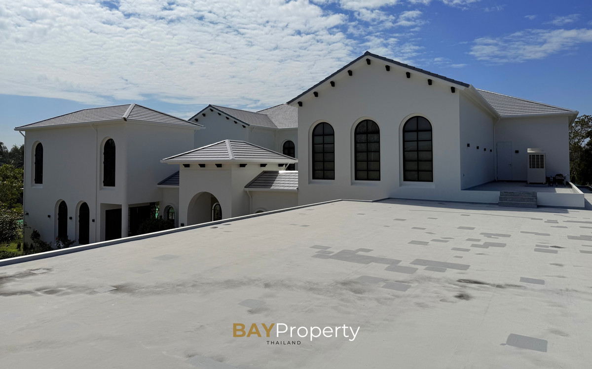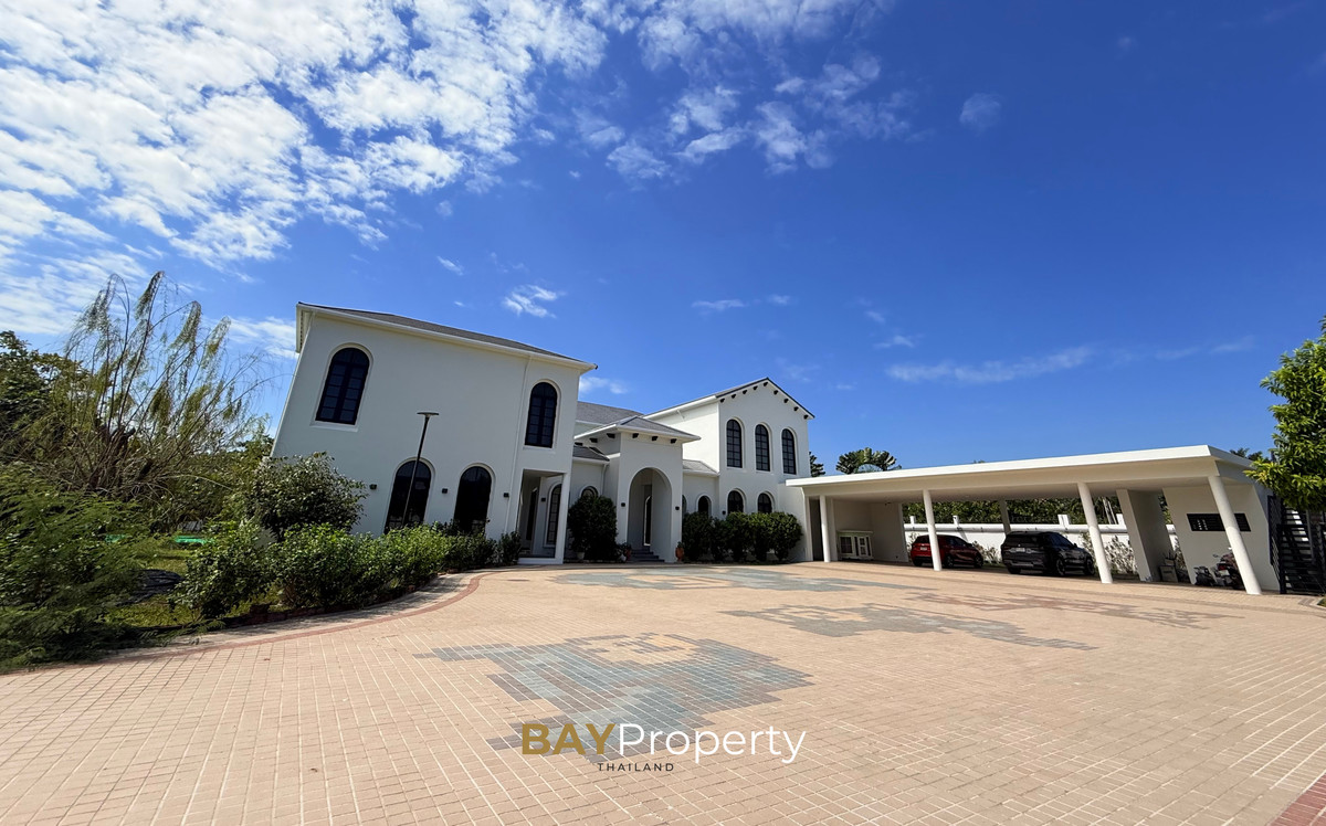 Luxury house for sale near Pattaya — Modern Italian Inspired on an area of over 6 rai 1 ngan 72 square wah. Special price: 109 million baht* A luxurious house inspired by the beauty of Italian architecture. Combining elegance and premium design. Convenient transportation, only 10 minutes from the motorway Upstairs 3 bedrooms | 3 bathrooms | 4 parking spaces + EV Charger This house comes with Premium built-in furniture and a wooden table in front of the house with specially made chairs. Value almost half a million baht Every piece of furniture and chandelier uses high quality materials. Shows the intention of the original owner of the residence House details: Facing northeast House area: 1,626 sq.m. Swimming pool: 38 sq.m. (salt system) Butlers house: 77 sq.m. Workshop area: approximately 38 sq.m. Modern Italian Inspired Style 3 bedrooms 3 bathrooms 1 dressing room walk-in closet 1 kitchen 1 large laundry room 1 Large living room 1 Large office 5–6 Multi-purpose room Parking for 4 cars Large garden Additional highlights: Complete water system including groundwater supply and private pond Beautiful garden around the house. Planting large trees, fruit trees, and fragrant flowering plants High security system with CCTV cameras around the house 24 hours a day Premium quality saltwater swimming pool Air conditioning in the whole house, built into the ceiling and central air conditioning. Energy saving Location: Pong Subdistrict, Bang Lamung District Chonburi Province Contact : BAY Property Thailand - Call : Contact number - Line : https://lin.ee/yqLHmvc - Whatsapp : Contact number