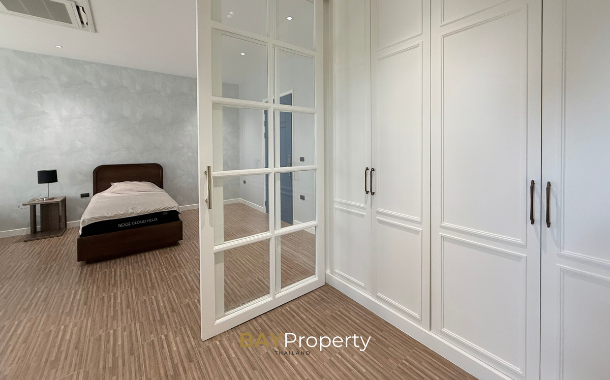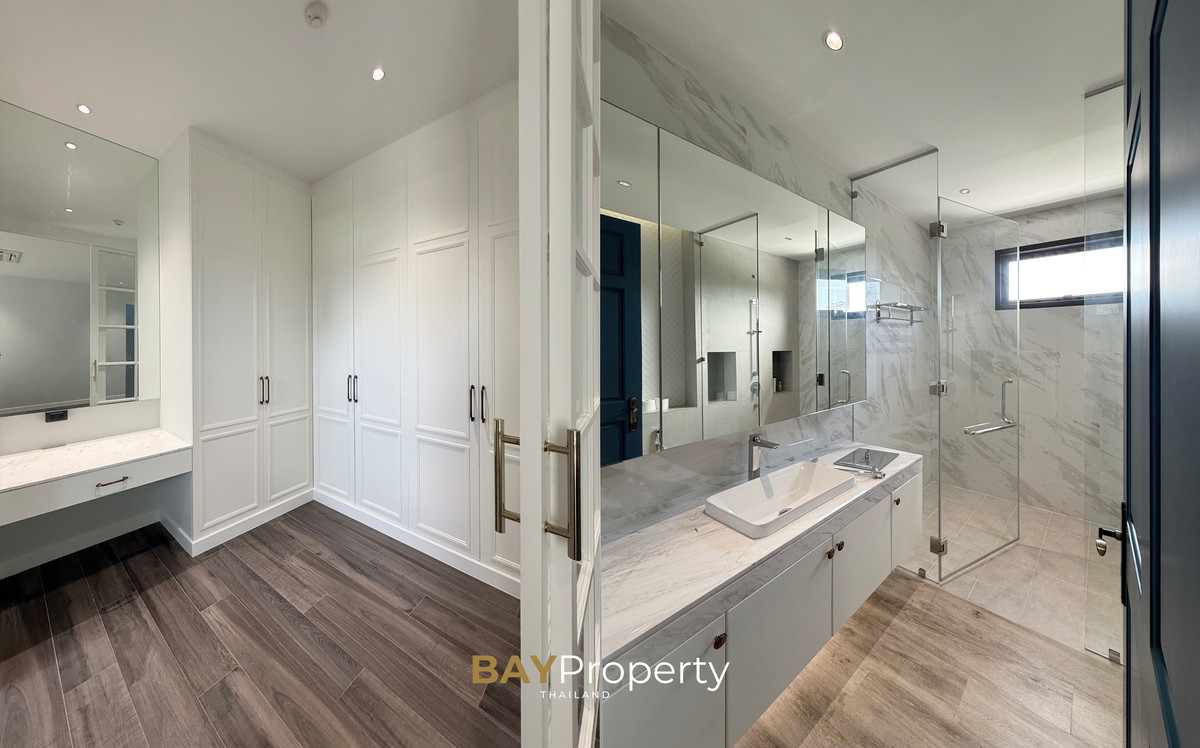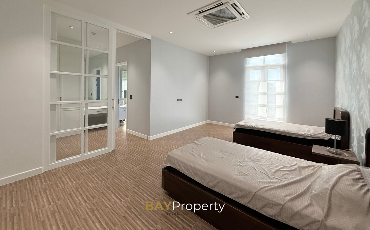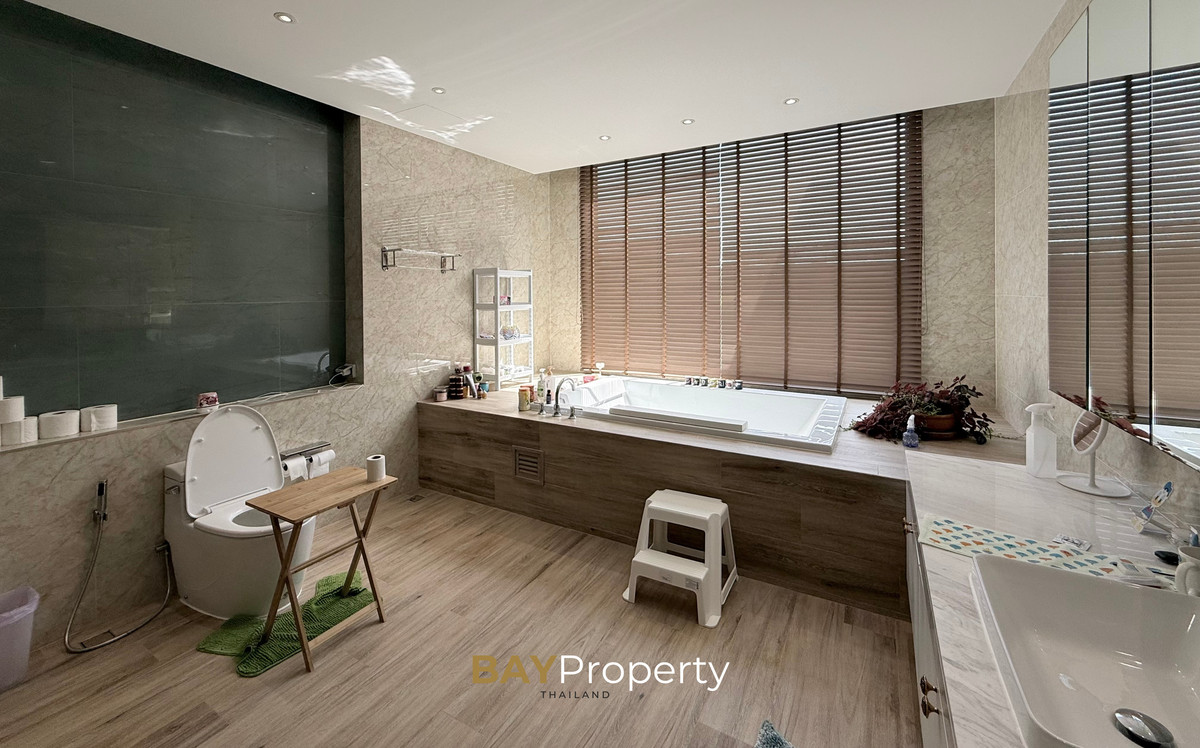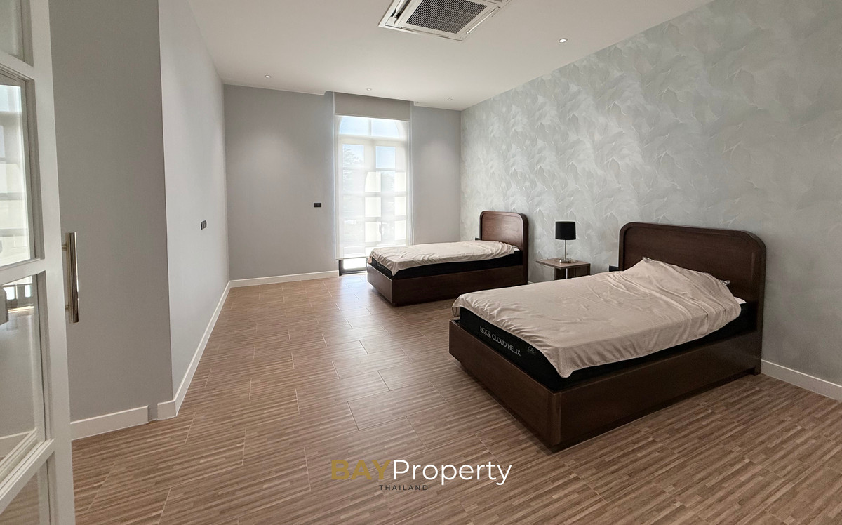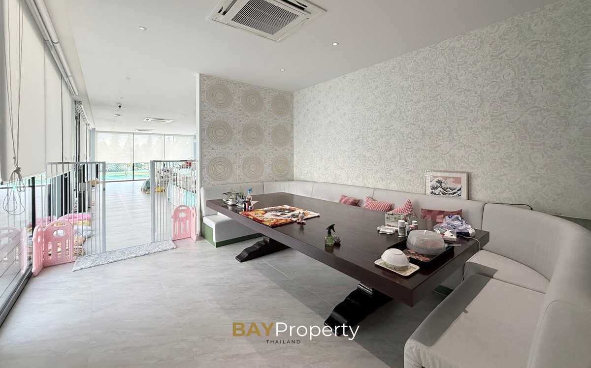 Luxury house for sale near Pattaya — Modern Italian Inspired on an area of over 6 rai 1 ngan 72 square wah. Special price: 109 million baht* A luxurious house inspired by the beauty of Italian architecture. Combining elegance and premium design. Convenient transportation, only 10 minutes from the motorway Upstairs 3 bedrooms | 3 bathrooms | 4 parking spaces + EV Charger This house comes with Premium built-in furniture and a wooden table in front of the house with specially made chairs. Value almost half a million baht Every piece of furniture and chandelier uses high quality materials. Shows the intention of the original owner of the residence House details: Facing northeast House area: 1,626 sq.m. Swimming pool: 38 sq.m. (salt system) Butlers house: 77 sq.m. Workshop area: approximately 38 sq.m. Modern Italian Inspired Style 3 bedrooms 3 bathrooms 1 dressing room walk-in closet 1 kitchen 1 large laundry room 1 Large living room 1 Large office 5–6 Multi-purpose room Parking for 4 cars Large garden Additional highlights: Complete water system including groundwater supply and private pond Beautiful garden around the house. Planting large trees, fruit trees, and fragrant flowering plants High security system with CCTV cameras around the house 24 hours a day Premium quality saltwater swimming pool Air conditioning in the whole house, built into the ceiling and central air conditioning. Energy saving Location: Pong Subdistrict, Bang Lamung District Chonburi Province Contact : BAY Property Thailand - Call : Contact number - Line : https://lin.ee/yqLHmvc - Whatsapp : Contact number