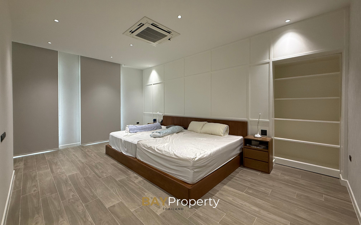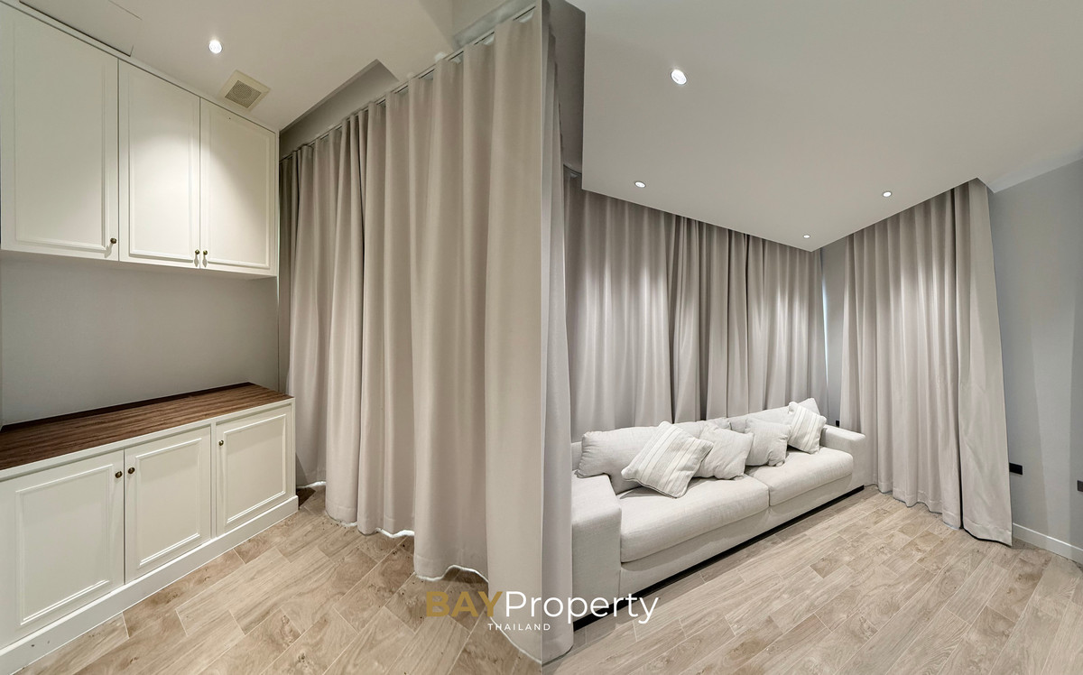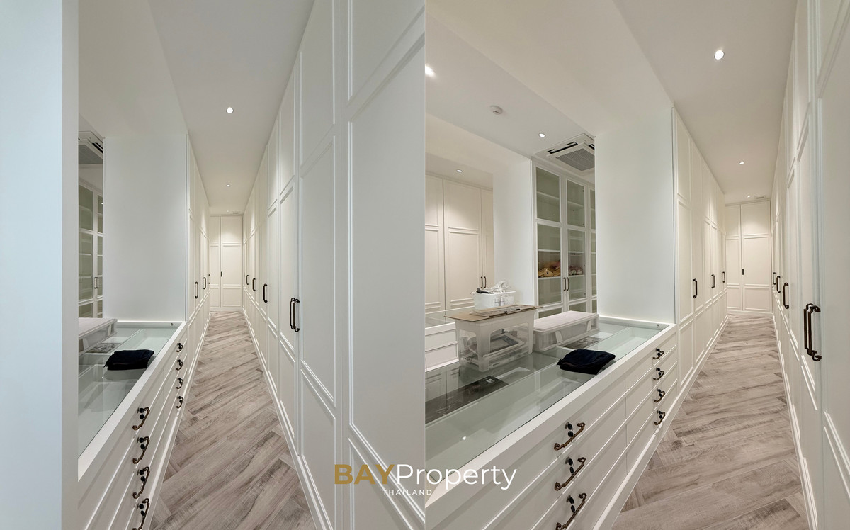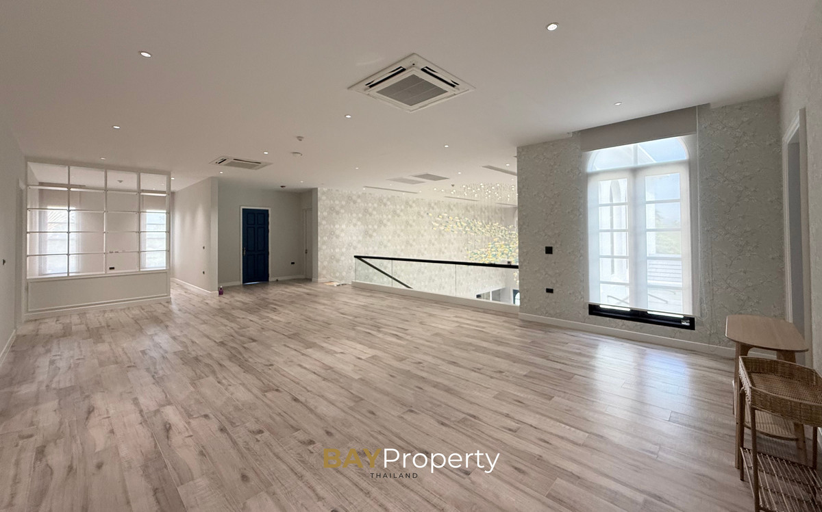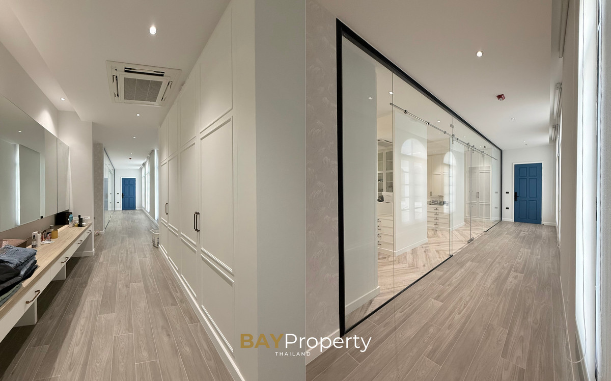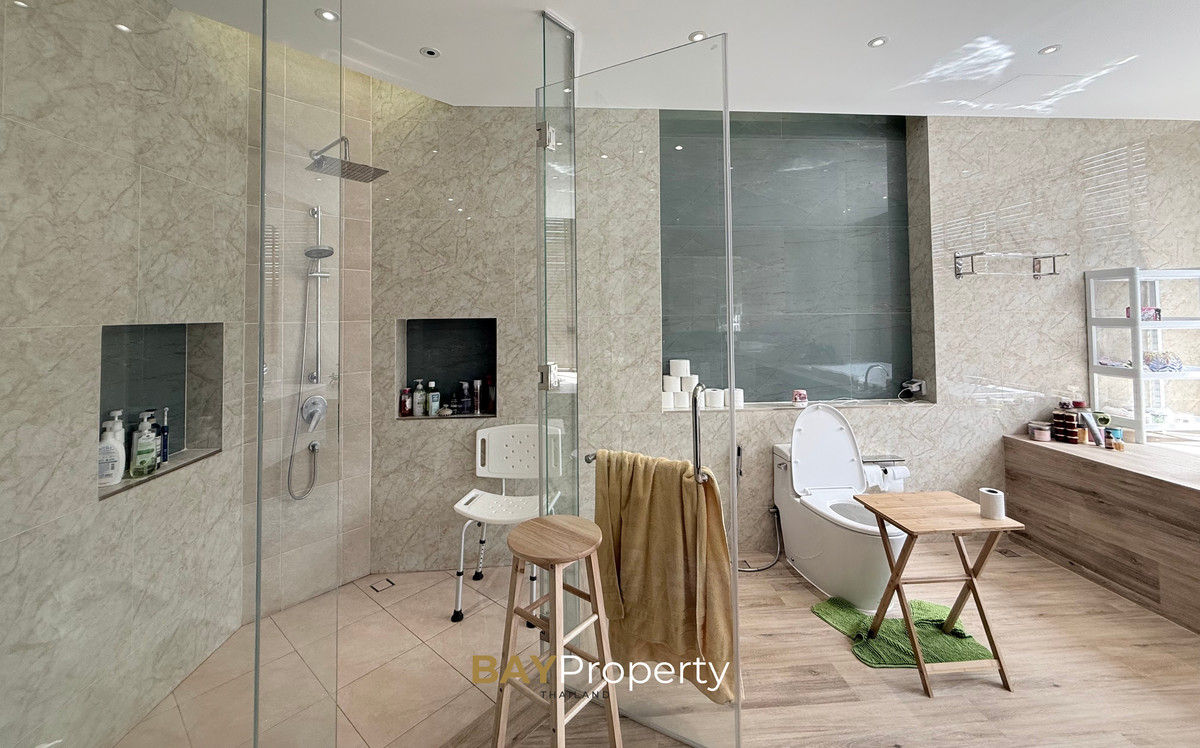 Luxury house for sale near Pattaya — Modern Italian Inspired on an area of over 6 rai 1 ngan 72 square wah. Special price: 109 million baht* A luxurious house inspired by the beauty of Italian architecture. Combining elegance and premium design. Convenient transportation, only 10 minutes from the motorway Upstairs 3 bedrooms | 3 bathrooms | 4 parking spaces + EV Charger This house comes with Premium built-in furniture and a wooden table in front of the house with specially made chairs. Value almost half a million baht Every piece of furniture and chandelier uses high quality materials. Shows the intention of the original owner of the residence House details: Facing northeast House area: 1,626 sq.m. Swimming pool: 38 sq.m. (salt system) Butlers house: 77 sq.m. Workshop area: approximately 38 sq.m. Modern Italian Inspired Style 3 bedrooms 3 bathrooms 1 dressing room walk-in closet 1 kitchen 1 large laundry room 1 Large living room 1 Large office 5–6 Multi-purpose room Parking for 4 cars Large garden Additional highlights: Complete water system including groundwater supply and private pond Beautiful garden around the house. Planting large trees, fruit trees, and fragrant flowering plants High security system with CCTV cameras around the house 24 hours a day Premium quality saltwater swimming pool Air conditioning in the whole house, built into the ceiling and central air conditioning. Energy saving Location: Pong Subdistrict, Bang Lamung District Chonburi Province Contact : BAY Property Thailand - Call : Contact number - Line : https://lin.ee/yqLHmvc - Whatsapp : Contact number