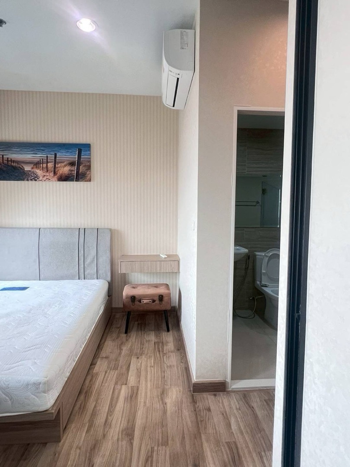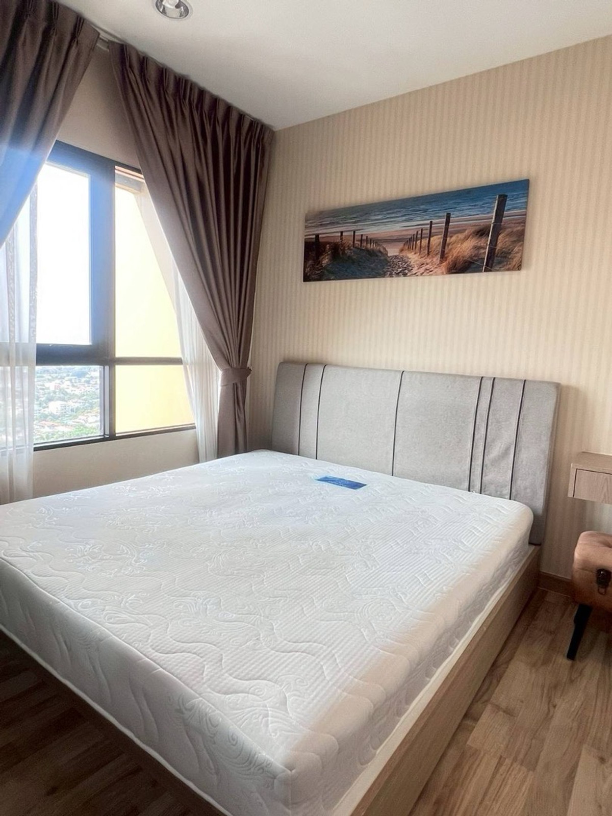 Niche mono Bearing 1 bedroom 1 bathroom 32 sqm. 28th floor, fully furnished 6 foot bed, curved view near BTS Bearing only 300 m 4 rooms available 📌Ready to move in Special price 10,500 baht from rent