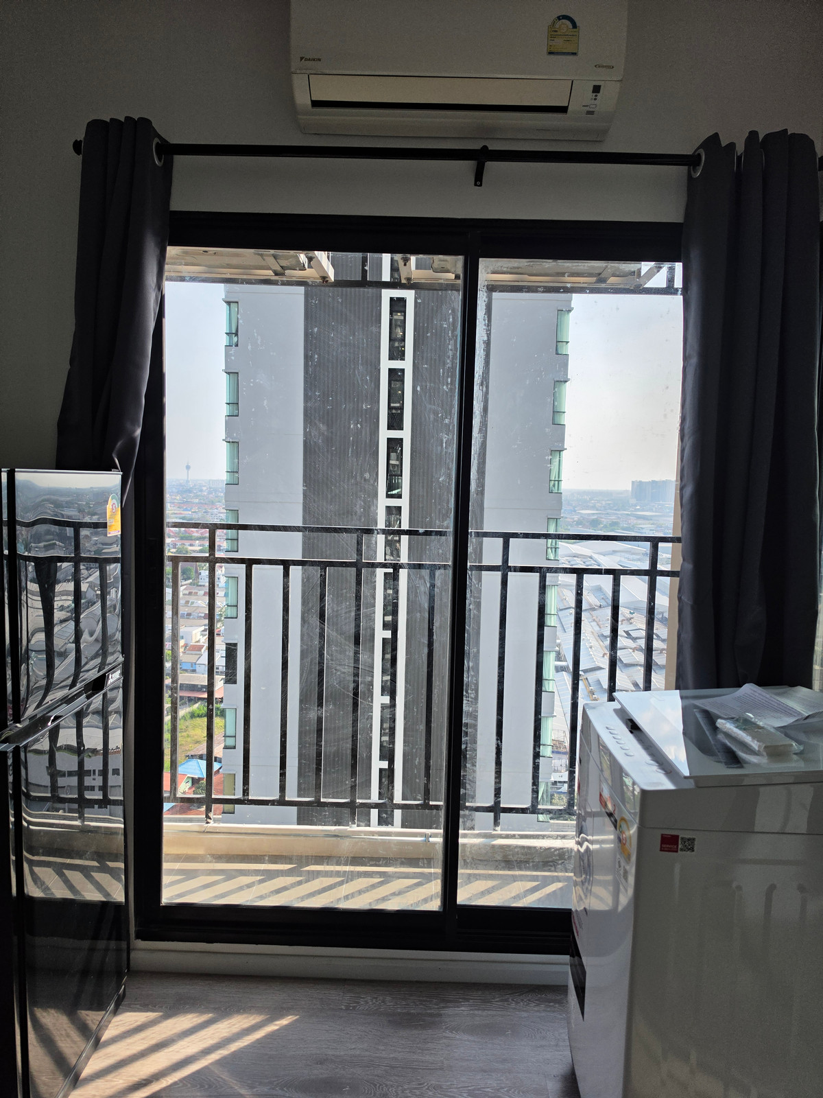 ห้องใหม่ไม่เคยมีคนอยู่ค่ะ 💫 สุขุมวิท-เทพารักษ์ ชั้น24ตึกA (22 ตรม) วิวฝั่ง รถไฟฟ้า ห้องมีเฟอร์นิเจอร์ และเครื่องใช้ไฟฟ้าครบ พร้อมอยู่อาศัย เดือนเมษายนค่ะ แอร์2ตัว ห้องนอนและห้องนั่งเล่น - เครื่องซักผ้