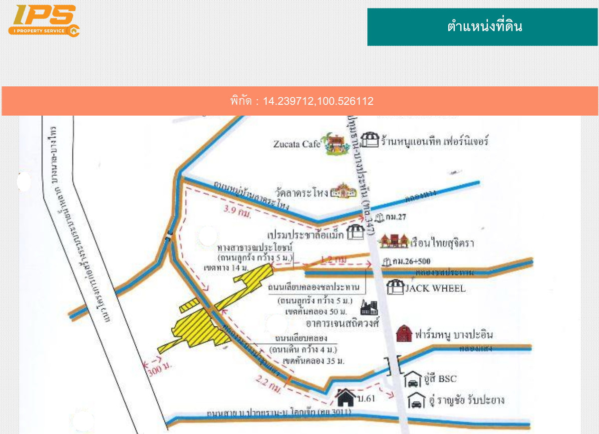 Empty land for sale, good location, 215-3-17.1 rai (land has some ponds), Bang Sai, Ayutthaya Province Location: Ban Pang Subdistrict, Sanam Chai (Sara Wo), Bang Sai District, Phra Nakhon Si Ayutthaya Province. 13190 Total area size: 215-3-17.1 rai Details Empty land, large plot, suitable for long-term investment There are some ponds in the area Access -The road in front of the land is a public road -A gravel road surface approximately 5 meters wide -The road zone is 14 meters wide Urban plan and use Urban plan: green space (Rural and agriculture) Suitable for -Agriculture / Farming -Commercial agricultural projects -Buy and keep for speculation Nearby places -Wat Phananchoeng Worawihan -Wat Yai Chaimongkol -Phra Nakhon Si Ayutthaya Rajabhat University -Bang Pa-in Industrial Estate -Bang Sai Hospital -Bang Sai Market Price 77,000,000 baht (free of burden) Contact I Property Service l Tel : Contact number Mr.Jaturon ID LINE : @ipsagency