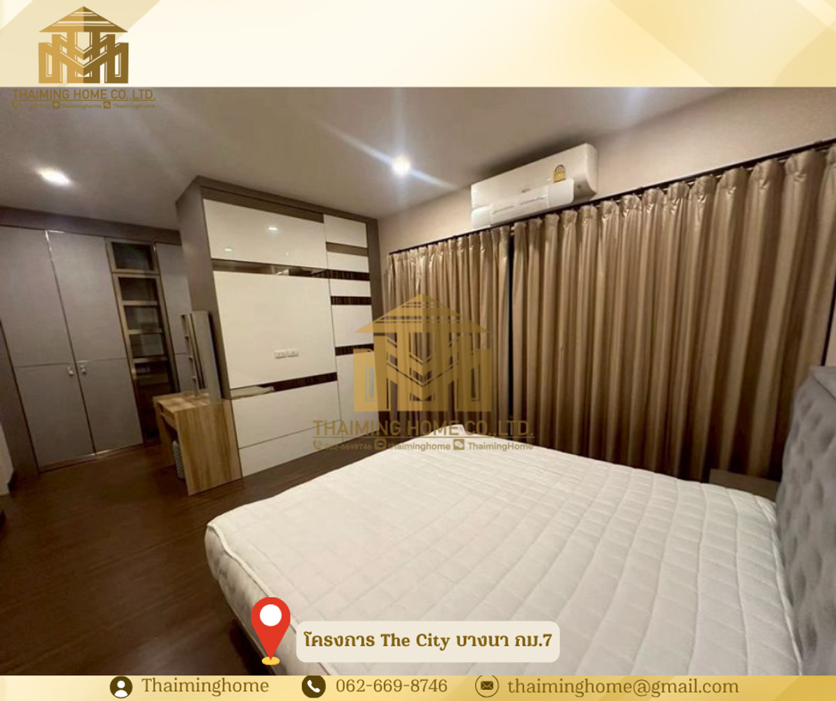 House for rent in The City Bangna KM7. 4 bedrooms, 4 bathrooms (TH8-04326) Details: - Land size: 65 sq.wah - Usable area: 260 sq.m. - 4 bedrooms, 4 bathrooms - 3 parking spaces (M size) - Living room - Round dining table (6-8 seats) - 55-inch TV - Digital door lock - Electric gate - Water heaters in all bathrooms - Close to the project's garden, clubhouse, and swimming pool (only 100 m away) - Fully furnished and equipped, ready to move in - Pets allowed Nearby Places: - Mega Bangna + IKEA - The Glass Bangna - Concordian School - SISB Suvarnabhumi School - D-Prep School - Thai Nakarin Hospital - Prince Suvarnabhumi Hospital Terms: - Rent: 68,000 THB ________________________ บริษัท ไทยหมิง โฮม จำกัด Thaiming Home Co.,Ltd. 泰明房园 房产公司 _________________________ Contact ติดต่อ : Contact number Contact : Contact number คุณหมิง Line ID: thaiminghome Line ID: @thaiminghome https://lin.ee/PkkHwYv Wechat : ThaimingHome E-mail : Contact email _________________________