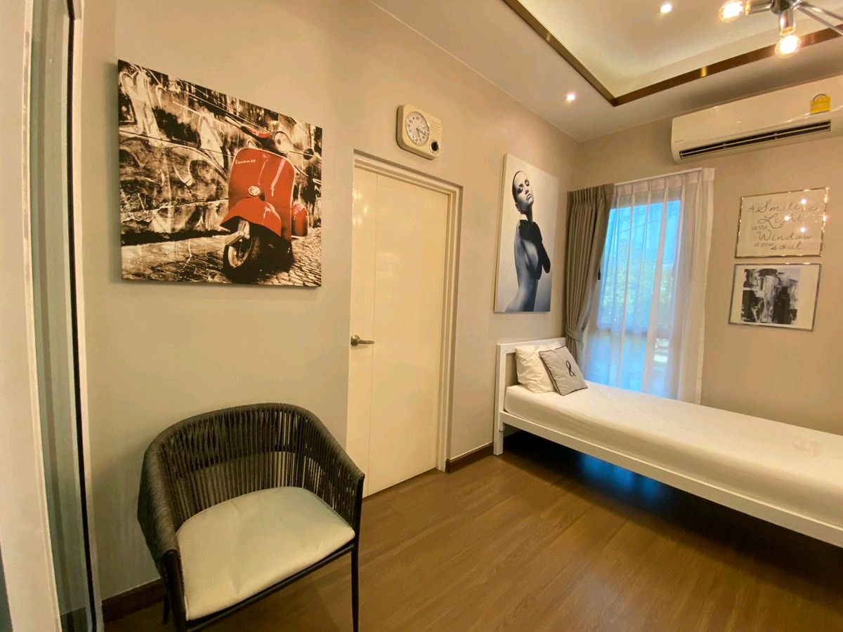 Owner Post Beautiful corner house for rent. The front of the house doesnt collide with anyone. There are only two houses in the alley. Next to the village club and swimming pool Ready to move in Usable area 400 square meters Fully freestanding and built-in furniture. and complete electrical appliances Four-way air conditioning and wall-mounted air conditioners in every room. Excellent condition. Excellent location Pleated mosquito netting throughout the house Good soundproofing glass Equipped with safety film to block heat and sunlight well Entry and exit in many ways. The village is next to the main road. Lots of restaurants Near department stores such as Central Bangna. Paradise Park, Seacon Square and leading supermarkets such as Lotus BigC Tops MaxValue Makro near Ozone sources such as Suan Luang Rama 9 and Bueng Nong Bon near Phatthanakan Expressway, Bangna Expressway, Kanchana Ring Expressway, BTS, Suvarnabhumi Airport. You can make an appointment to view 6 bedrooms (including air-conditioned maids room), 7 bathrooms, 4 parking spaces (inside the house), many more cars outside the house Next to the clubhouse, swimming pool, fitness, co-working space If interested, chat or call. Ms. Thanyarat Call Contact number Accepting Agents. If you have customers, please contact us.