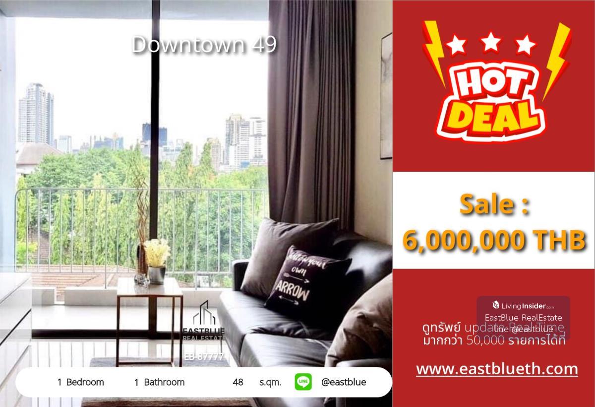 Opportunity to own a luxurious condo in the city center at Downtown 49 for only 6,000,000 Baht 1 bedroom, 1 bathroom condo, size 48 square meters Perfect for urban living with a location near BTS Phro