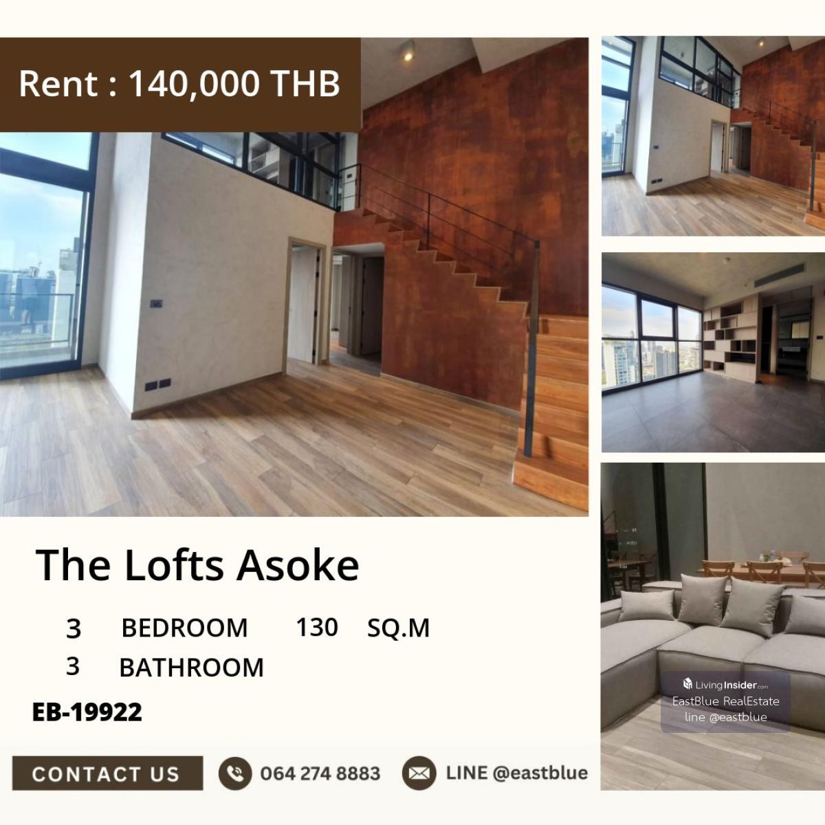 03/04/2026, For Sale/Rent The Lofts Asoke 3 Bedrooms Near MRT PhetchaburiCity Center Living, Area 130 sqm, Fully Equipped Amenities! 0642748883