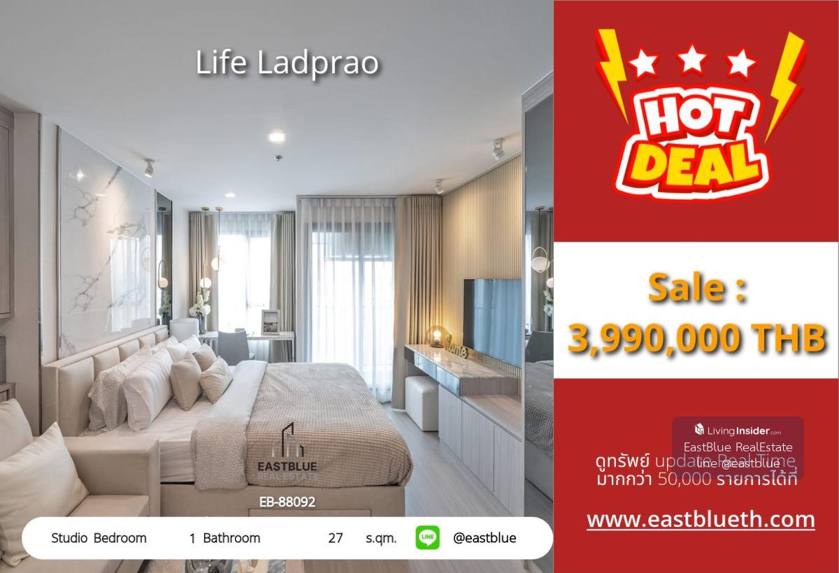30/03/2026, Studio condo Life Ladprao 27 sq.m. near BTS/MRT for only 3.99 millionMeets urban lifestyle needs, swimming pool, fitness, ready for working from home! 0642748883