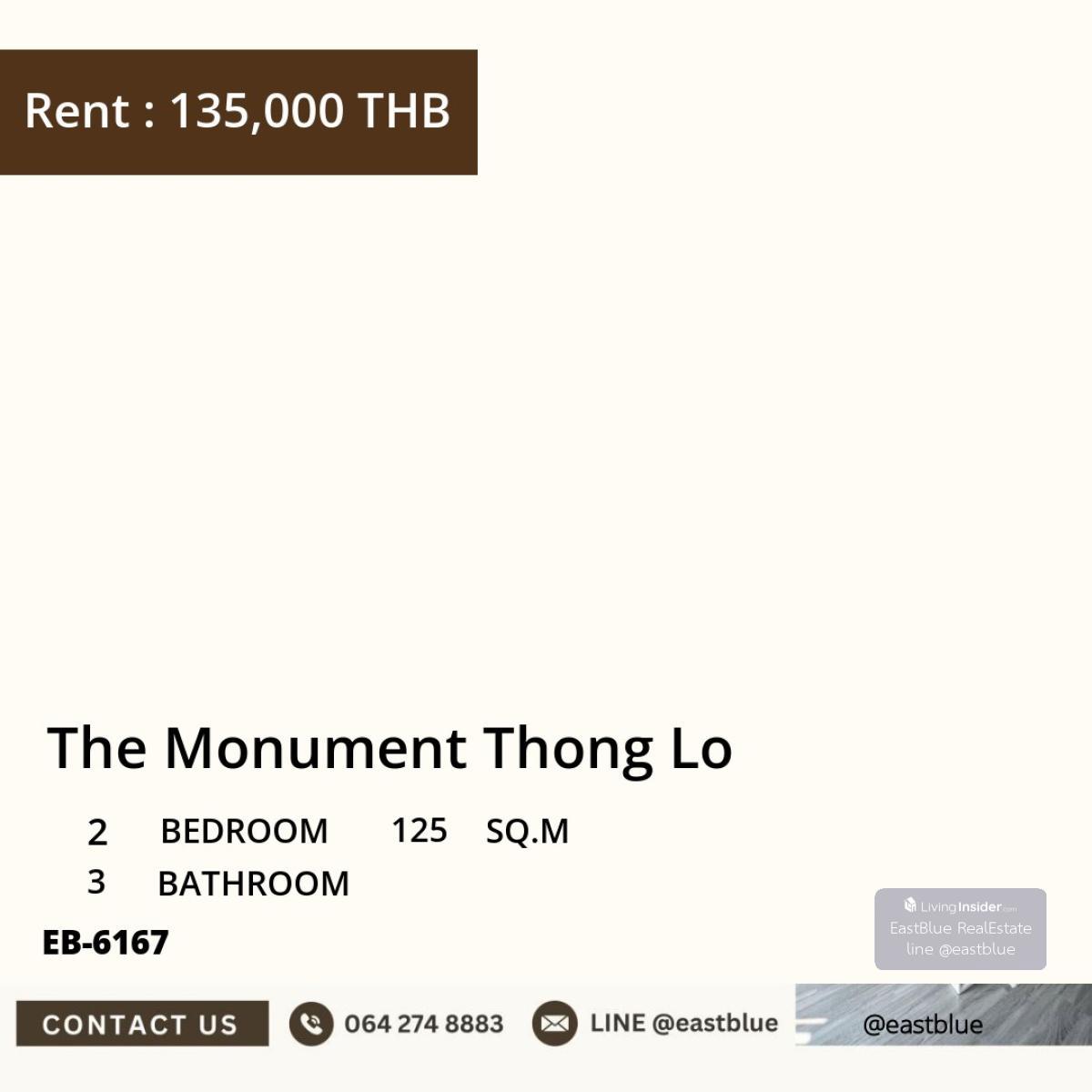 03/04/2026, Luxury premium level! 2 bedrooms at The Monument Thonglor ready to move in immediatelyRent 135,000 Baht/month near BTS Thonglor, convenient for every journey! 0642748883
