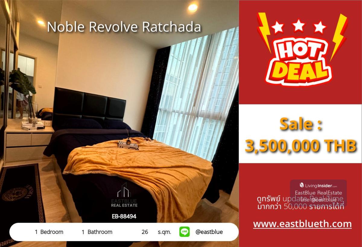 03/04/2026, Noble Revolve Ratchada condominium, 1 bedroom, fitness + swimming pool, near MRT Thai Cultural.For sale at only 3.5 million, ready to move in, meeting the needs of city life! 0642748883