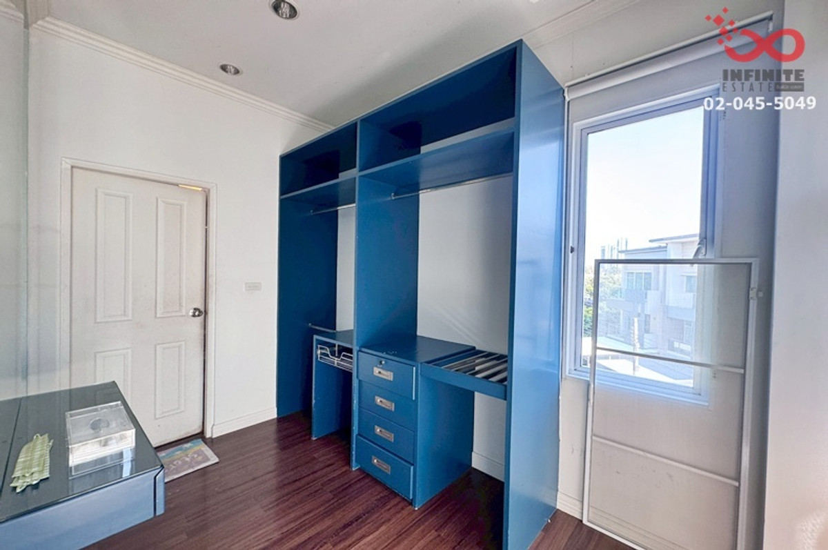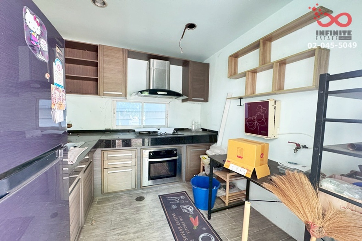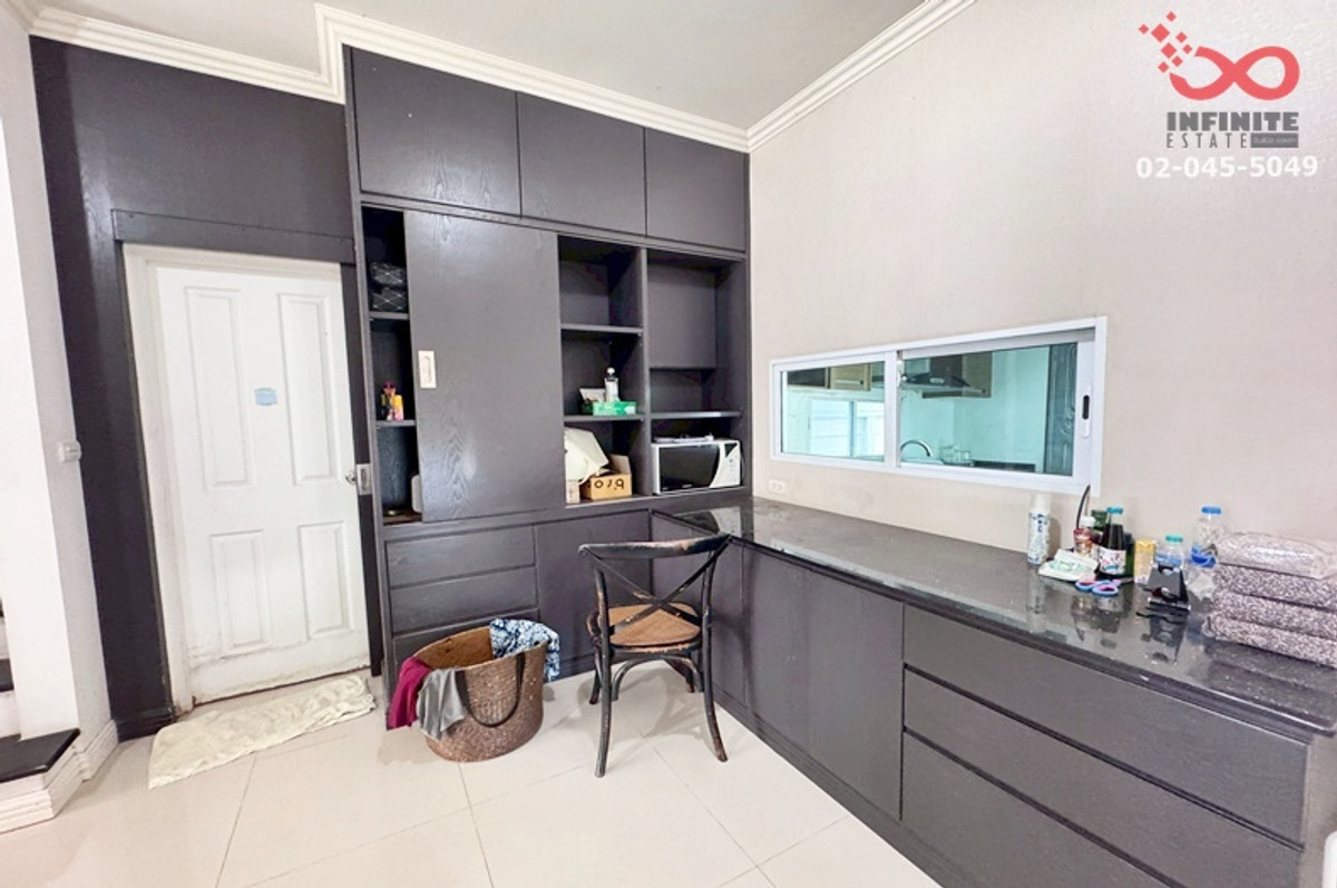 Contact : Khun Palm Contact number office : Contact number Project name : Town Plus 10240 Area: 50.2 square wah | Usable area 195 square meters Number of rooms: 3 bedrooms, 3 bathrooms, living room, kitchen, maids room Decoration: 3 air conditioners / 1 water heater / refrigerator / bathtub / some built-in furniture Parking: 4 cars Common area: CCTV / security guard / garden / Playground Property facing direction: South Review: 3-story townhome in a potential project. Central location Architectural design in Urban Tropical Style, convenient travel, close to Ramintra - At Narong Expressway, close to all amenities Nearby places: Shopping and lifestyle places - Central Festival East Ville - The Crystal - Tesco Lotus, HomePro Educational institutions - Lertlah School - Satri Witthaya School 2 Hospital - Paolo Chokchai Hospital 4 - Vejthani Hospital Travel - MRT Blue Line - Ramintra-At Narong Expressway (along the expressway) - Chalongrat Expressway