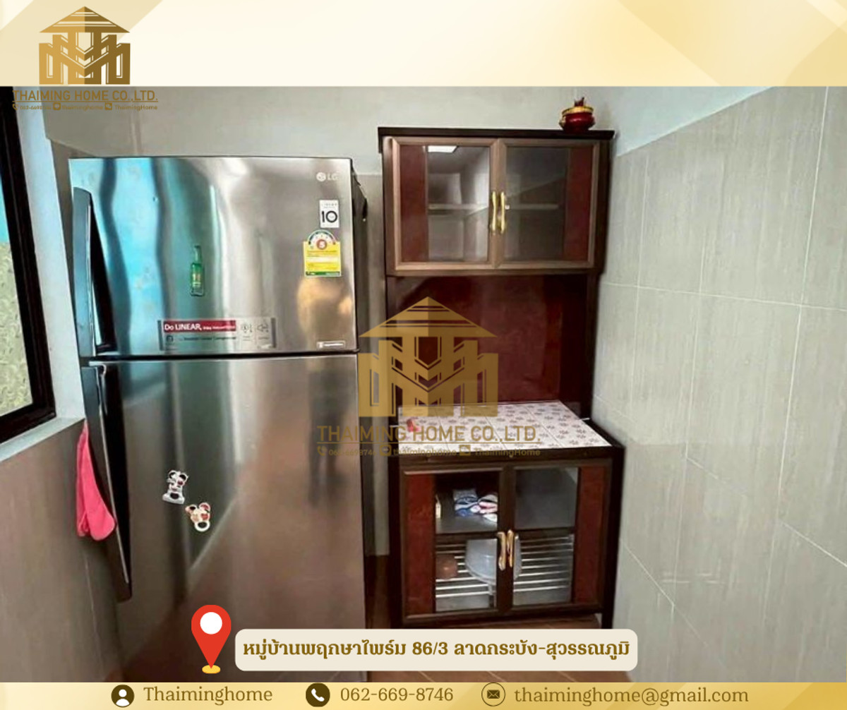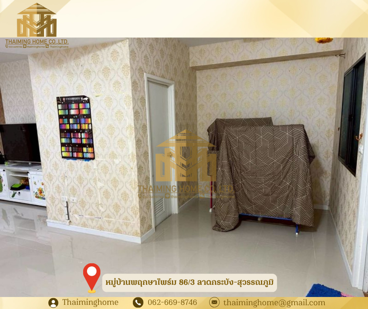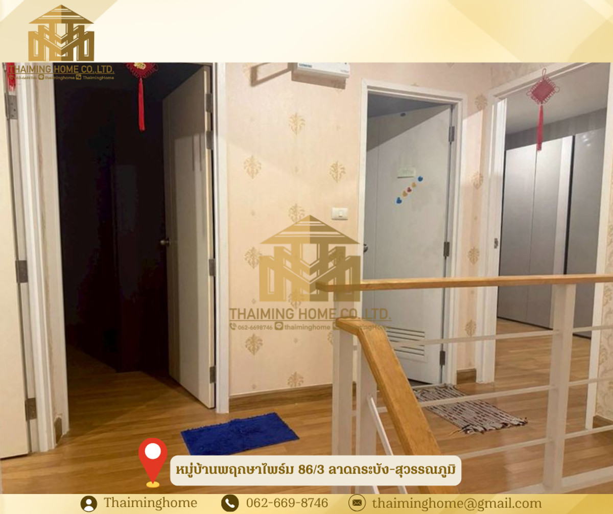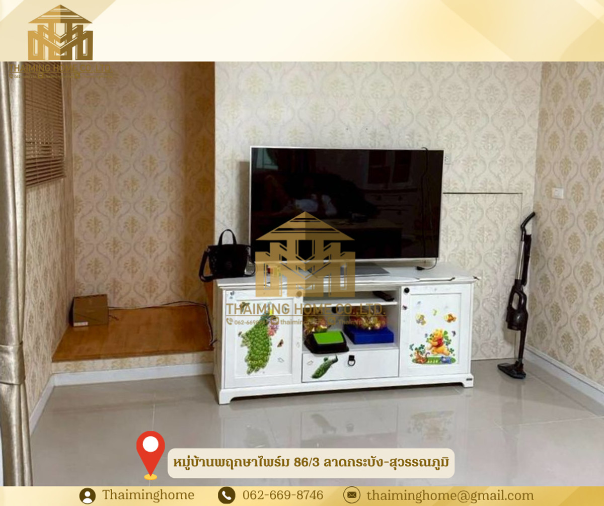 Two-story townhome for rent in Pruksa Prime 86/3 Ladkrabang-Suvarnabhumi, Bang Sao Thong, Samut Prakan. Size: 20.7 sq.wa. (Property Code TT06-1226) Details: - Land area: 20.7 sq.wa. - Usable area: 105 sq.m. - 3 bedrooms, 2 bathrooms - 1 kitchen - 1 living room - 1 laundry room - Parking for 2 cars Nearby places: - Suvarnabhumi Airport - Central Village - The Paseo Ladkrabang - Ladkrabang Hospital - Sirindhorn Hospital Rental conditions: - Minimum 1-year contract - 2 months security deposit - 1 month advance payment - Rent: 14,000 baht/month -------------------- บริษัท ไทยหมิง โฮม จำกัด Thaiming Home Co.,Ltd. 泰明房园 房产公司 ----------------------- Contact ติดต่อ : Contact number Contact : Contact number คุณหมิง(中文) Line ID: thaiminghome Line ID: @thaiminghome https://lin.ee/PkkHwYv Wechat : ThaimingHome E-mail : Contact email -----------------------