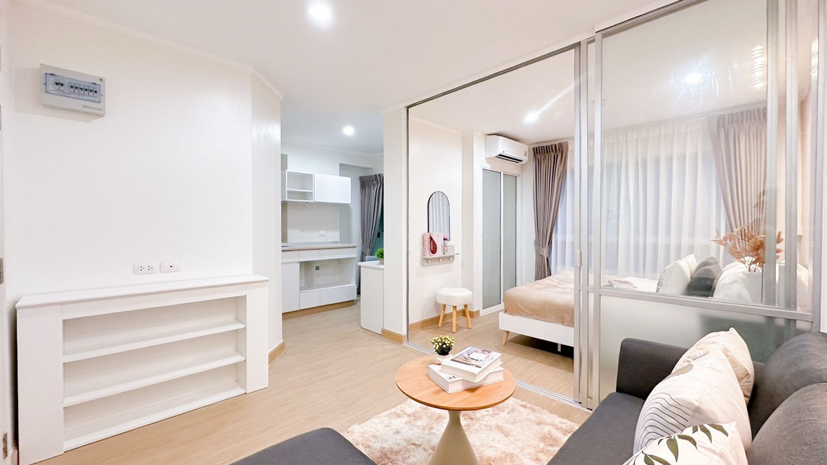 🌟Lumpini Ville Phatthanakan 26 – New Petchaburi Road! 🤩 Near Airport Link Ramkhamhaeng Station, only 7 minutes! • 1 bedroom, 1 bathroom with balcony • Size 26 sq m. • There is a kitchen counter. With balcony • Installments start at just 6,xxx baht [Common area] ✓ Fitness, swimming pool ✓ Garden area, multi-purpose room ✓ Newly decorated room, ready to move in ✓ convenience store Laundry shop ✓ Key card to enter and exit the building ✓ 24-hour security guard . Free!! Furniture free!! Air conditioner free!! Water heater free!! TV shelf free!! 5 foot bed with mattress free!! Free 2-layer curtain to protect against UV !! Sofa free!! Table in front of the sofa free!! Work desk with chair