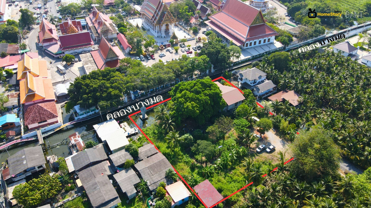 Land for sale on Bang Mod Canal, includes a house suitable for a cafe or residence, Bang Khun Thian, Bangkok. (Gant-342) Land size: 787.5 square wa (1-3-87.5 rai) Beautiful land, 51 meters wide and 62 meters deep. Includes a large house of approximately 300 square meters, previously operated as a very popular cafe. A ferry service from Wat Phutthabucha can be built to access the area. A pier is already available. The land is adjacent to Bang Mod Canal, opposite Wat Phutthabucha, a large and busy temple. The entrance to the land is next to Chaiyapruek Village, Rama 2. Multiple access routes. Selling price: ฿30,712,500 (฿39,000/square wa) Interested parties please contact: Khun Gant Tel. Contact number, Contact number Line: @GantProperty