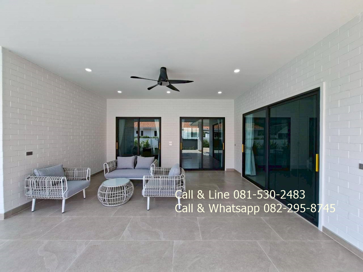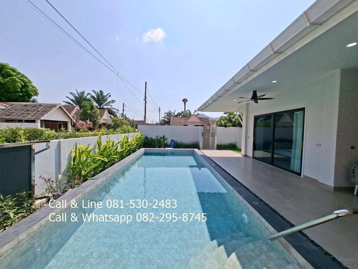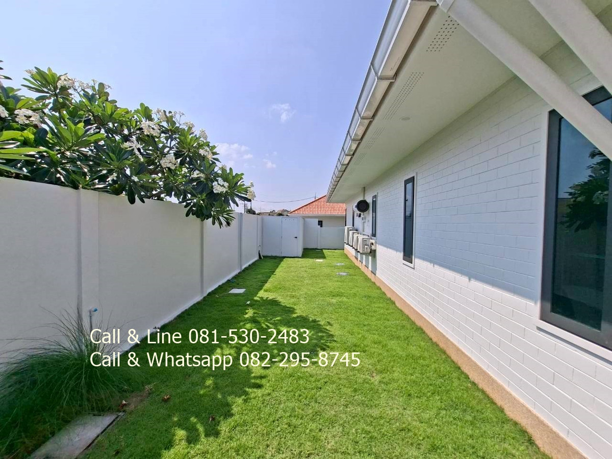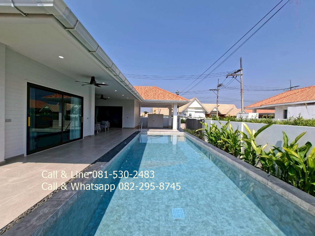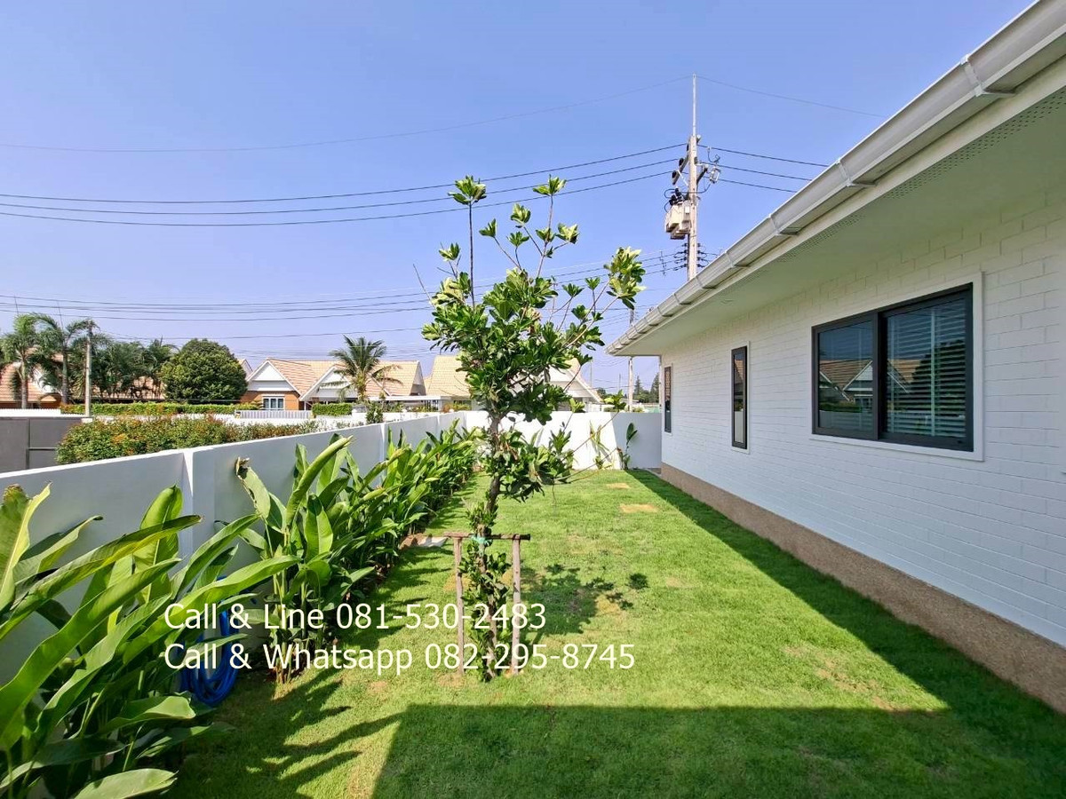 Detached house for sale 3 bedrooms 3 bathrooms Land area 130 sq.wah (520 sq.m) Living area 318 sq.m Sell price 9,100,000thb includes furniture, water pump, water tank, air cons, garden, swimming pool, kitchen. 2 carpark. Salt water swimming pool 4 x 9 meters. Community fee is 10thb per sq.wah per month. It is for security, lighting, street, trash collection and environment in this community. Community water and government electricity. Electric remote gate. It is approximated 15 minutes drive to the beach, Huahin center, Malls. This community is matched to family who prefer natural environment and easy to go to city center, the beach. Real estate agent: Pla Call & Line: Contact number Call & Whatsapp: Contact number