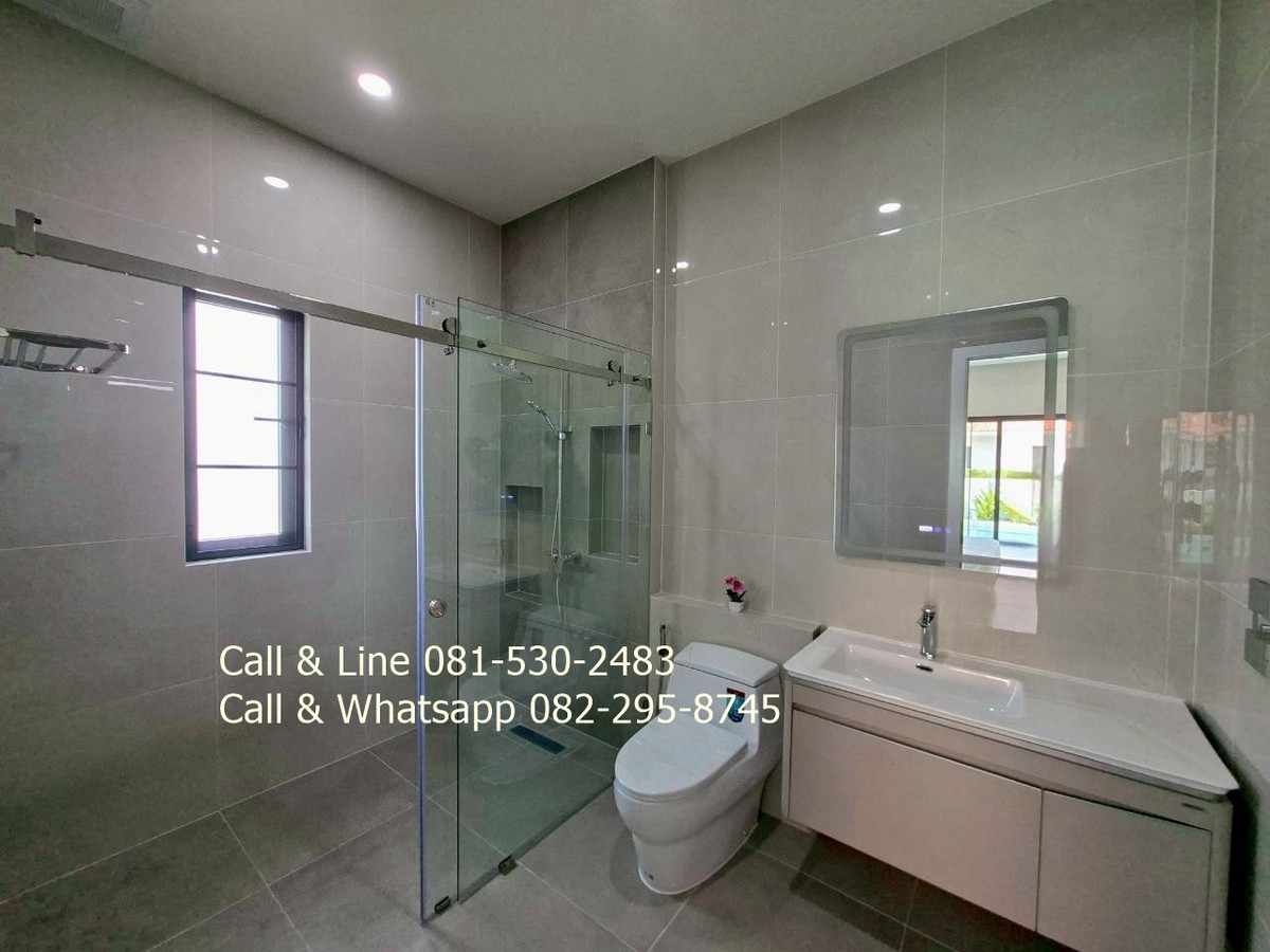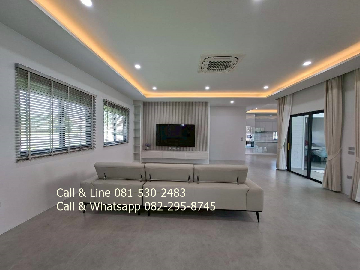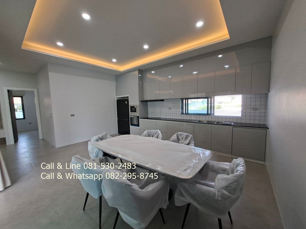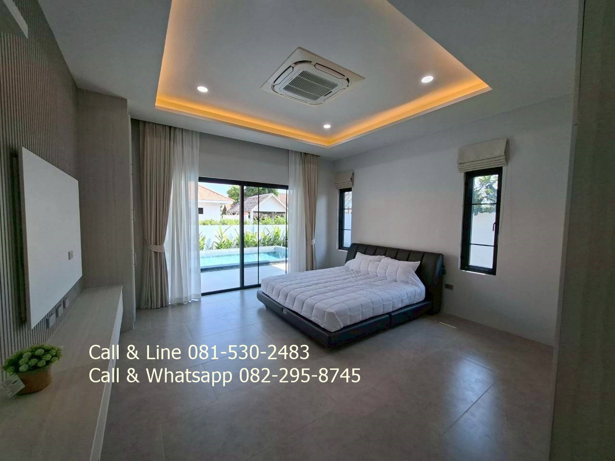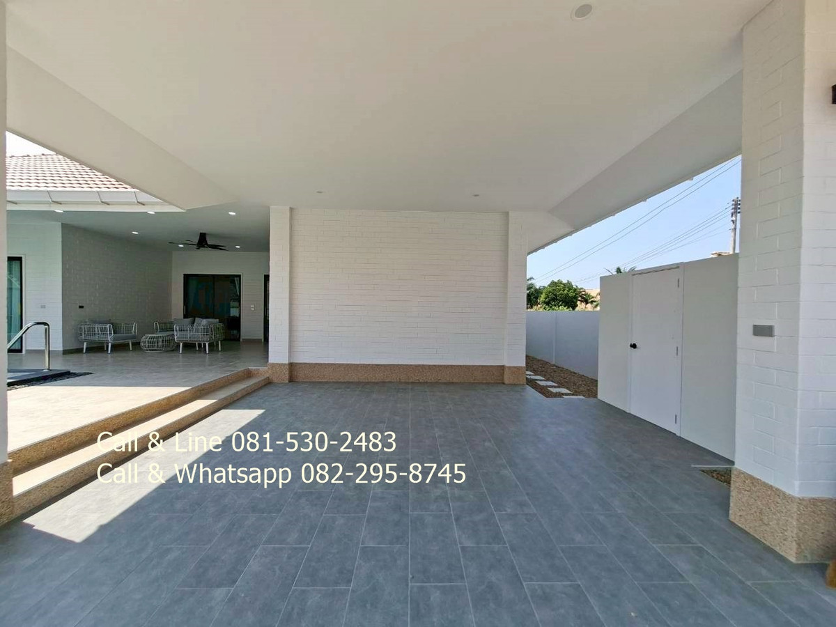 Detached house for sale 3 bedrooms 3 bathrooms Land area 130 sq.wah (520 sq.m) Living area 318 sq.m Sell price 9,100,000thb includes furniture, water pump, water tank, air cons, garden, swimming pool, kitchen. 2 carpark. Salt water swimming pool 4 x 9 meters. Community fee is 10thb per sq.wah per month. It is for security, lighting, street, trash collection and environment in this community. Community water and government electricity. Electric remote gate. It is approximated 15 minutes drive to the beach, Huahin center, Malls. This community is matched to family who prefer natural environment and easy to go to city center, the beach. Real estate agent: Pla Call & Line: Contact number Call & Whatsapp: Contact number