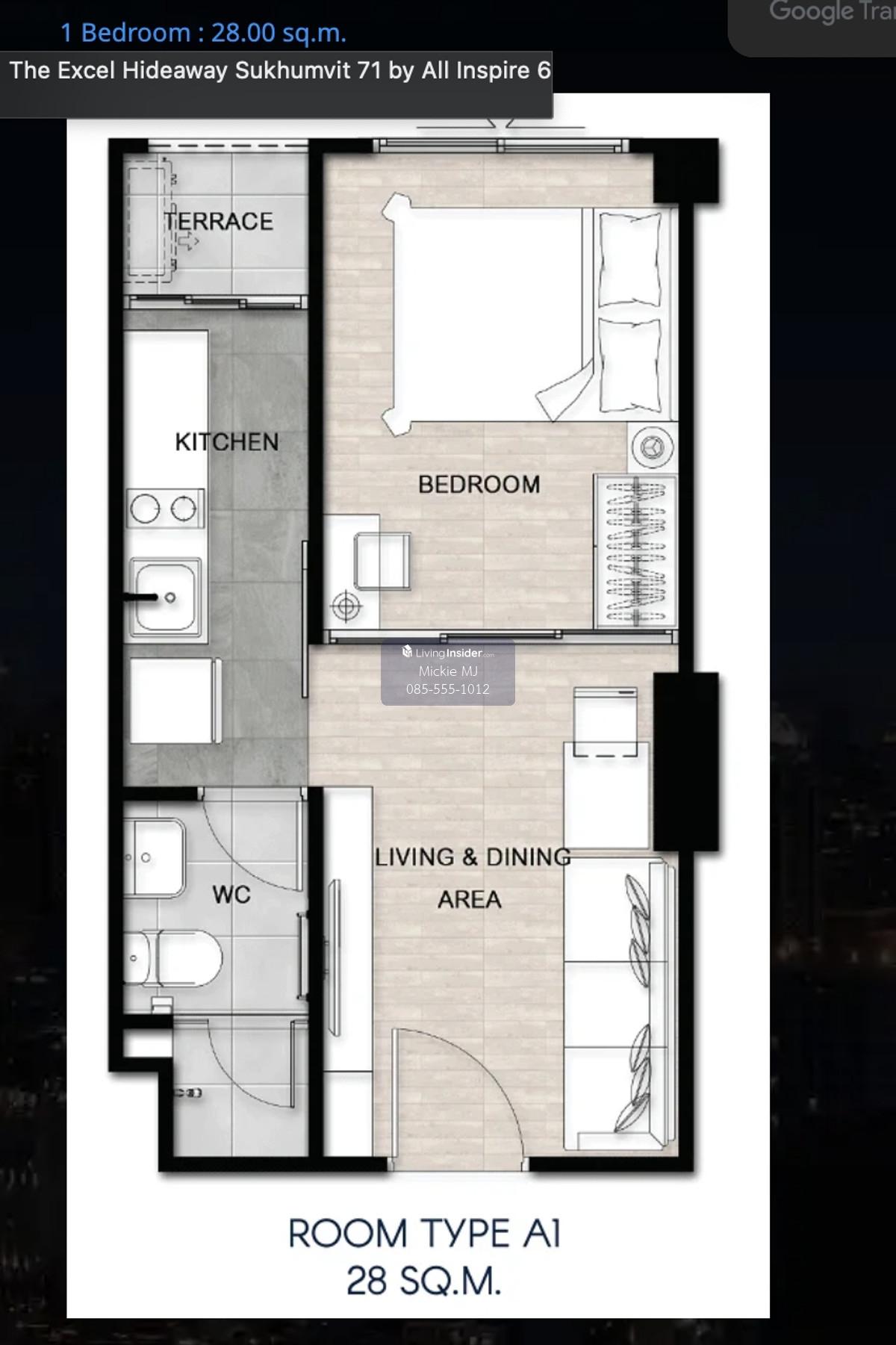1 Bedroom Convenient location : Sukhumvit 71, close to Phra Khanong – Ekkamai • 1 Bedroom | 28 sq.m. • 4th Floor, Building C (rear view – one of the best views) • Building C is close to the swimming p