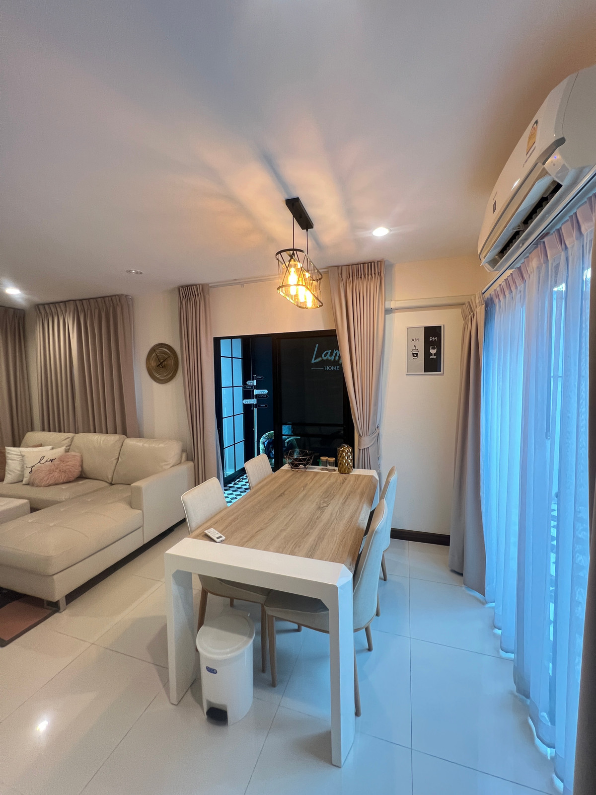 2-story independent townhome for sale, beautifully decorated, Homey Style, furniture + electrical appliances. Ready to move in! The Plant & Natura Trend Wongwaen-Lumlukka Klong 5 (The Plant & Natura Trend Wongwaen-Lumlukka Klong 5) 📍 Good location! Next to the Outer Ring Road, Ramindra-Chatuchot Expressway, the Dark Green Line. - Area 25.50 sq m., usable area 125 sq m. - 3 bedrooms | 2 bathrooms - 1 multi-purpose room (Already added) - House width 7.5 meters, can park 2 cars + add a parking roof. New parking space paved Free gift - 4 air conditioners - Whole house furniture - Some electrical appliances - Add a multi-purpose room to the side of the house Facilities - Club House - Swimming pool - Fitness - Public park - playground - Auto Access Card - CCTV cameras - Security guard 24 hrs. Nearby places - Maruay Market - Mangmeesap Market - Big C Lam Luk Ka Khlong 5 - Homepro Lam Luk Ka Klong 5 - Traiphat School - Western University Watcharapol Campus - B.Care Medical Center Hospital - CGS Saimai Hospital - Synphaet Hospital, Lam Luk Ka - Wat Prachumrat - Lam Luk Ka Provincial Police Station - Lam Luk Ka District Office 💰 Selling for only 3,200,000 baht The owner is selling it himself. If interested, please inquire and make an appointment to see the house. Tel. Contact number (Nan)