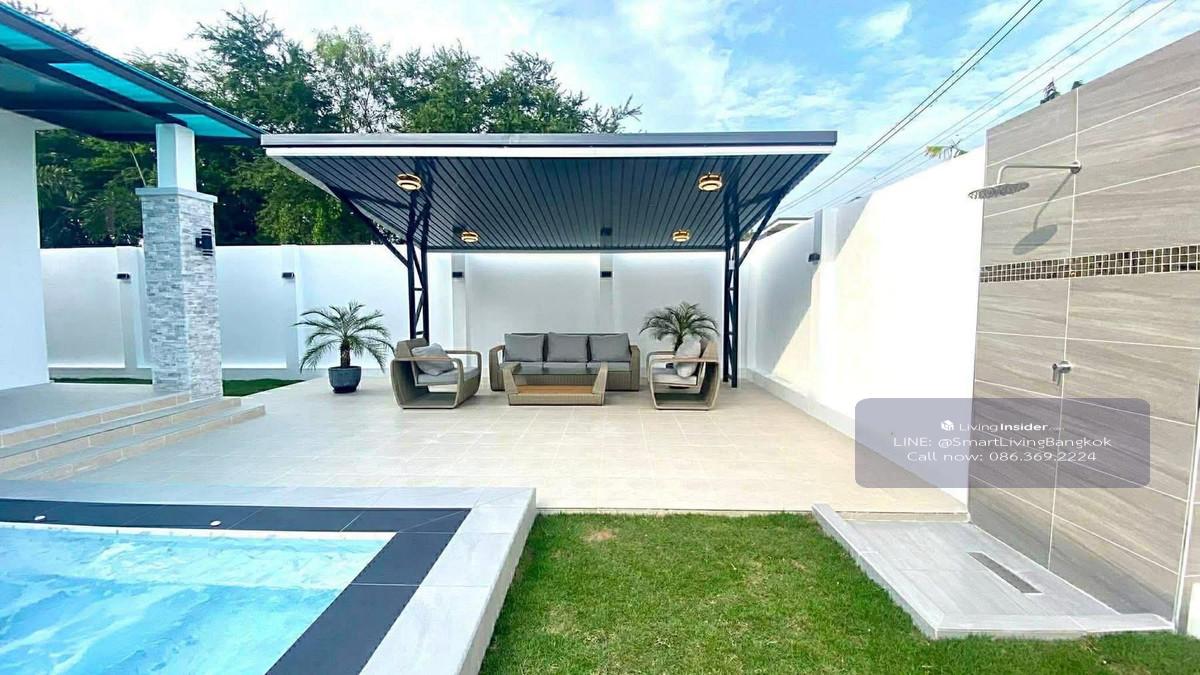 Project Name: Pool Villa Pattaya Property Code: 380396 Price: 10,990,000 Baht Usable Area: 300 sq.m Land size: 133.1 sq.w Bedrooms: 3 Bathrooms: 3 Parking: 4 More details • Brand new, never occupied •